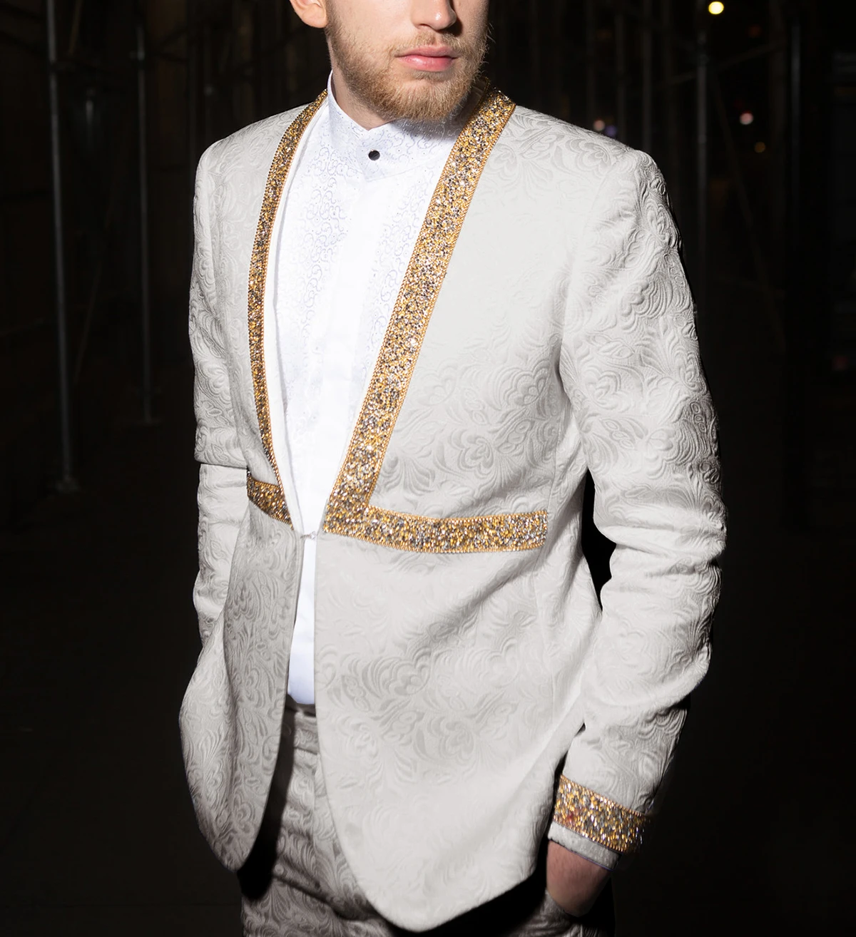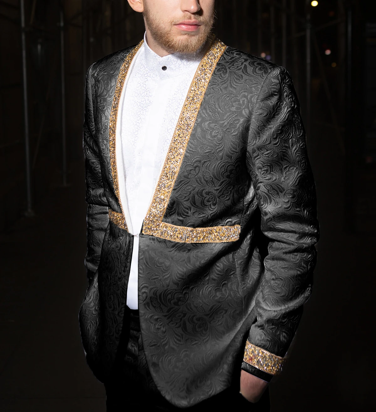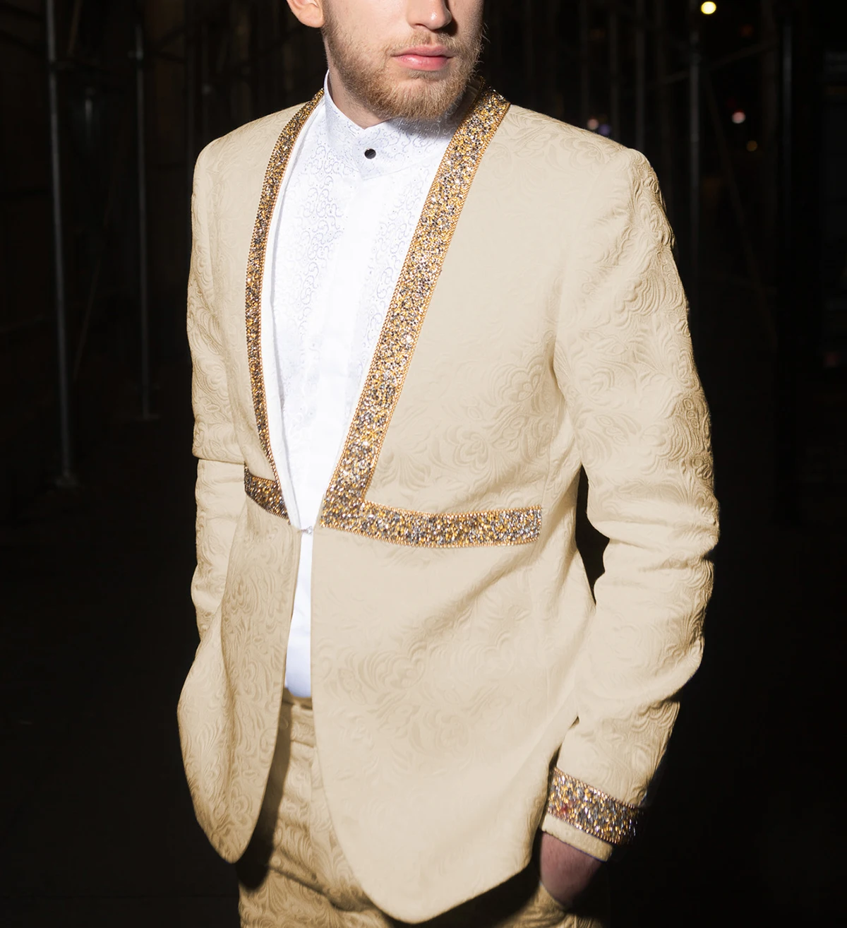 SOLOVEDRESS мужское платье Благородный жаккардовый бриллиантовый костюм из двух частей без воротника вечерний мастер Свадьба жениха (Блейзер + брюки)
