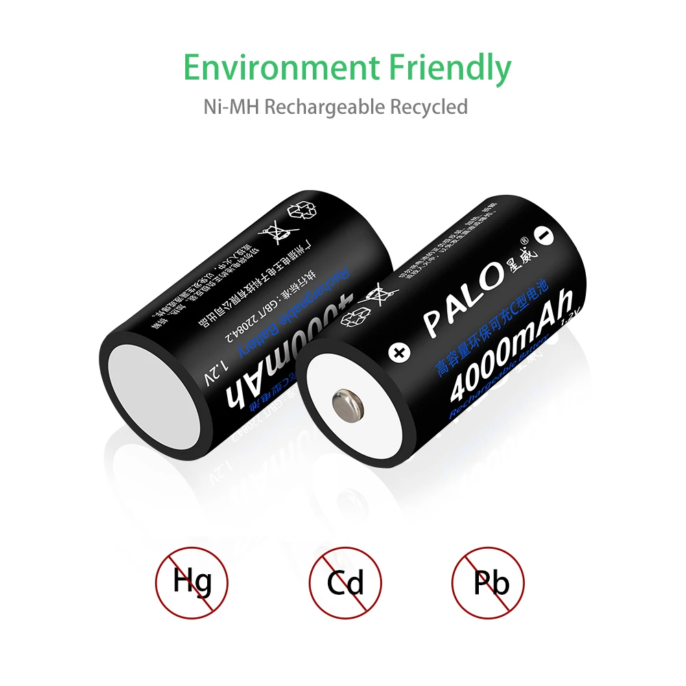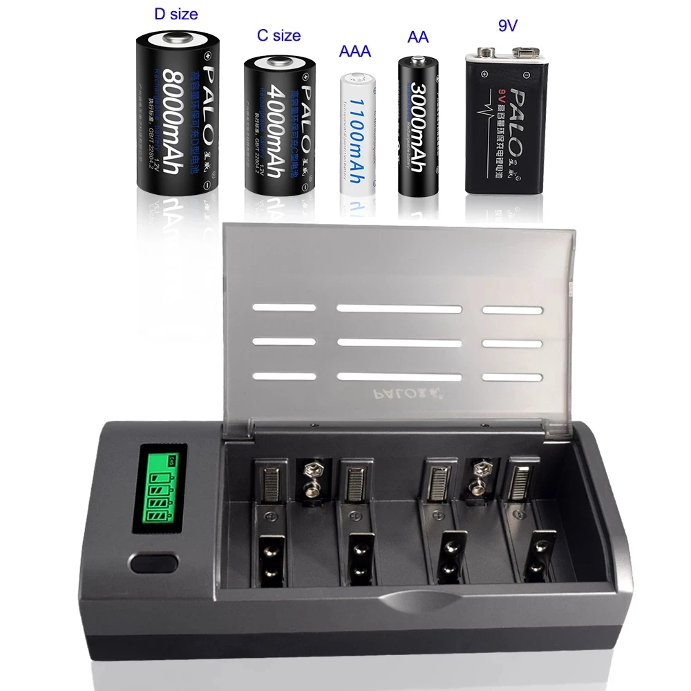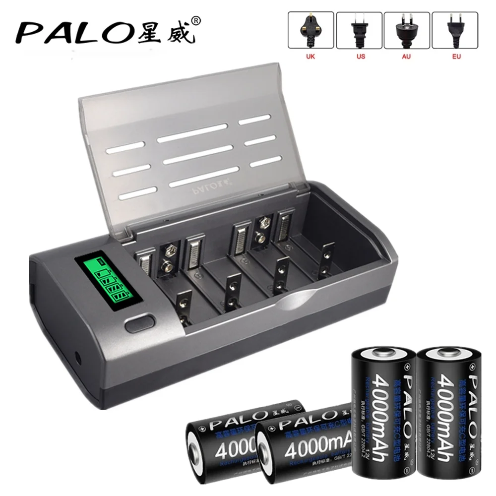 PALO C размер батареи 4000mAh перезаряжаемые батареи LR14 1,2 V Ni-MH Smart Быстрая зарядка LCD зарядное устройство для AA AAA C D 9V батареи