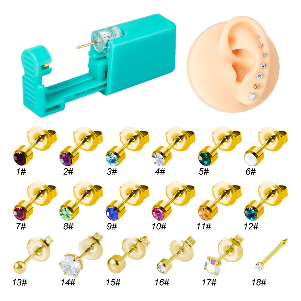 1 шт. Безопасность самостоятельно пистолет пирсинг уха женская обувь цвета: черный, золотистый, Серебристый; Цвет Покрытием Одноразовые тату набор с 2-5 мм CZ серьги с драгоценным камнями шпильки