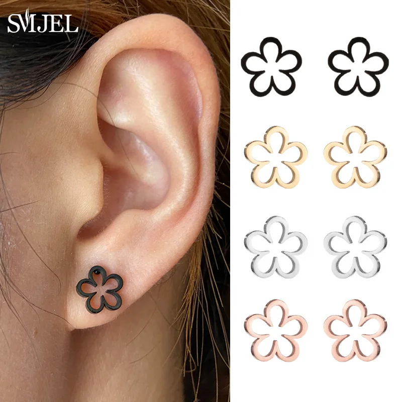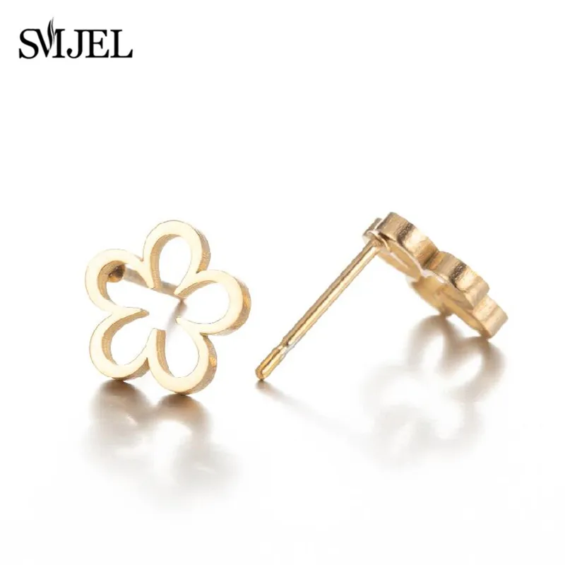 Симпатичные серьги в форме цветка из нержавеющей стали для женщин, ...