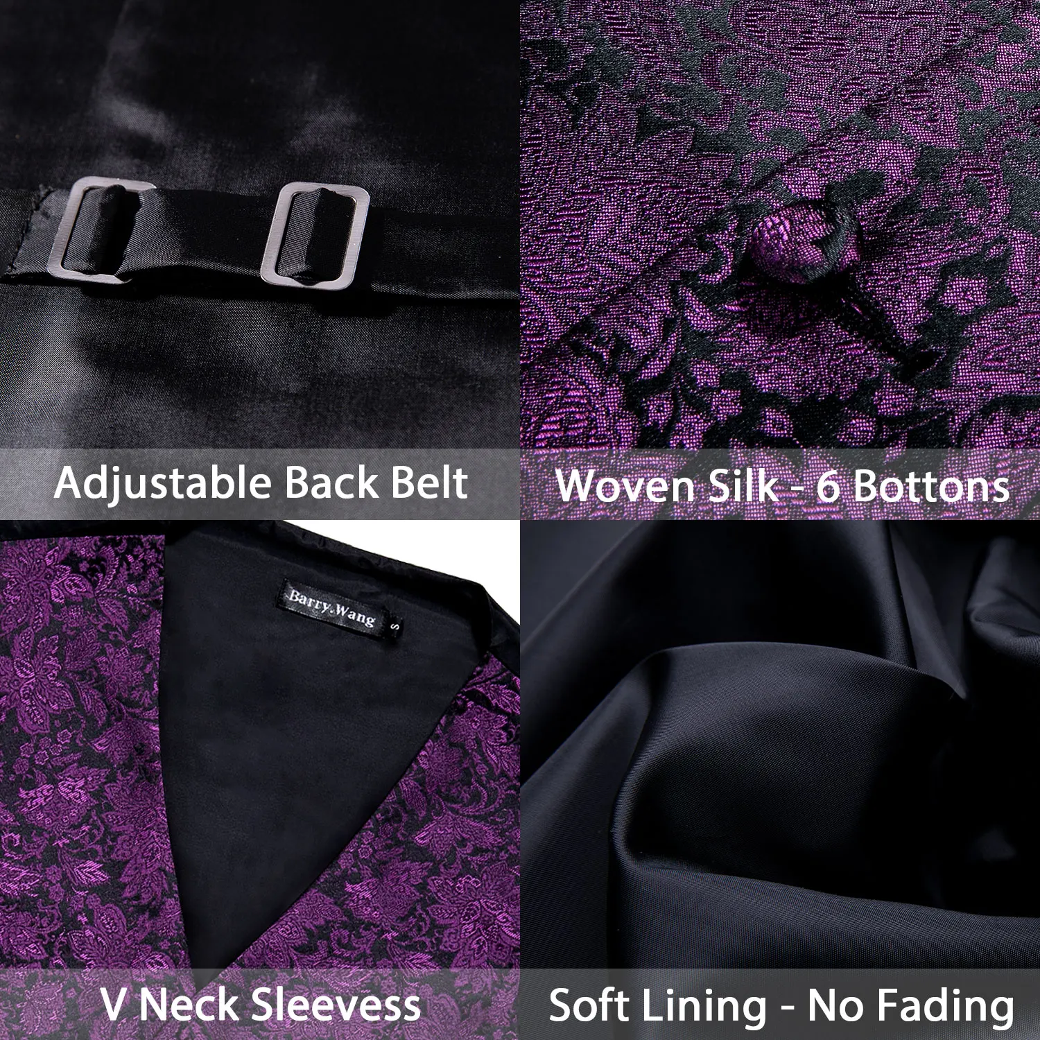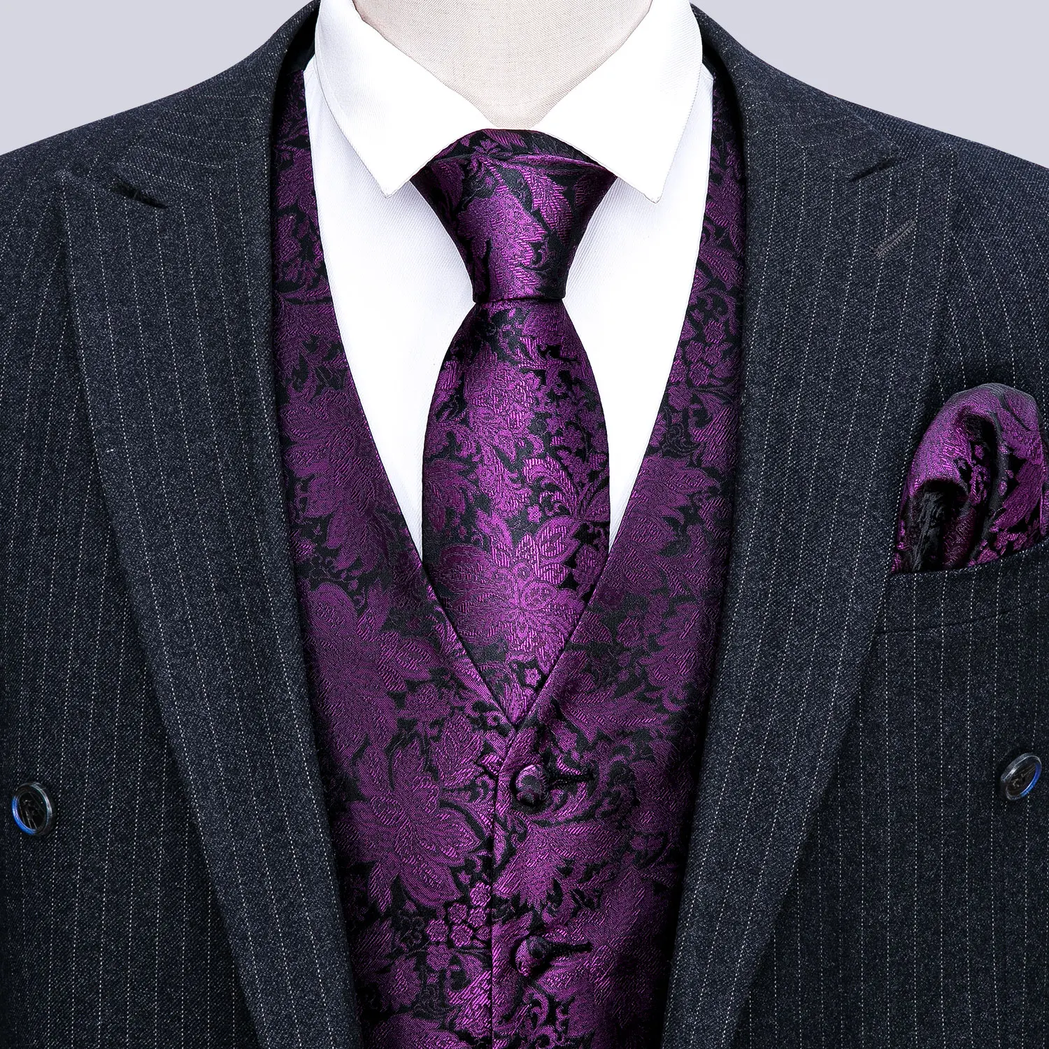 Фиолетовая Мужская Роскошная парча, цветочный костюм с пейсли, жилет, шелковый галстук, жилет, набор, Мужская одежда, Барри. Ван, модный дизайнерский M-2038