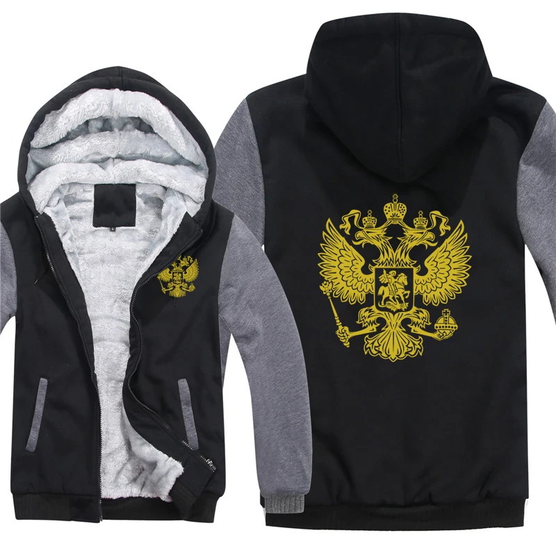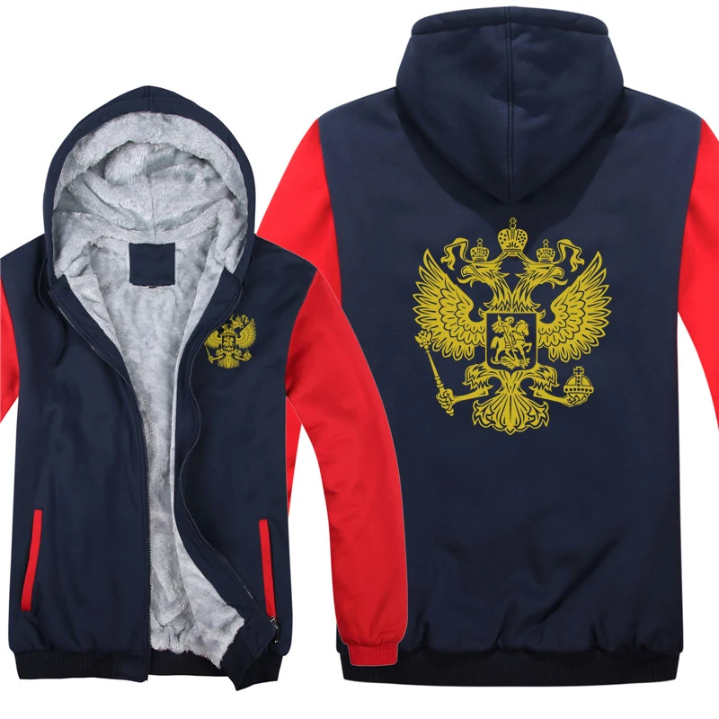 Мужские толстовки с гербом России, крутые зимние толстые толстовки с подкладкой из русского флага, пуловеры