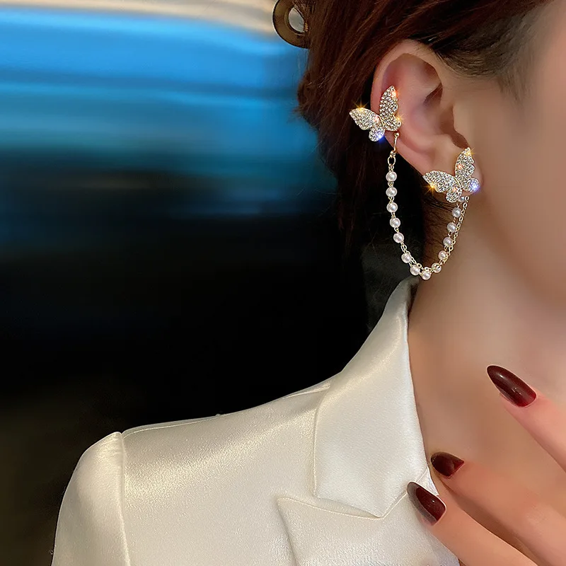 Серьги-капельки женские, элегантные, корейские, стразы, бабочки, металлическая цепочка, 2021