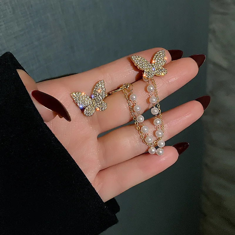 Корейские ассиметричные серьги Стразы в форме бабочки для женщин и ...