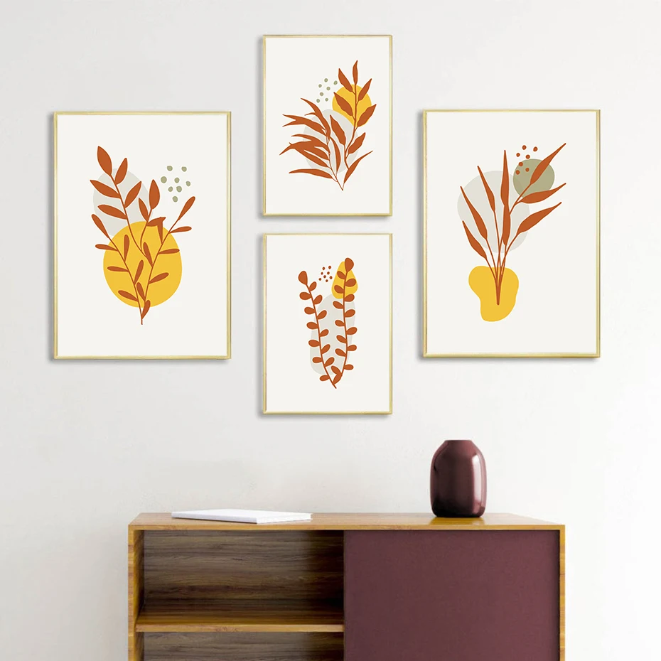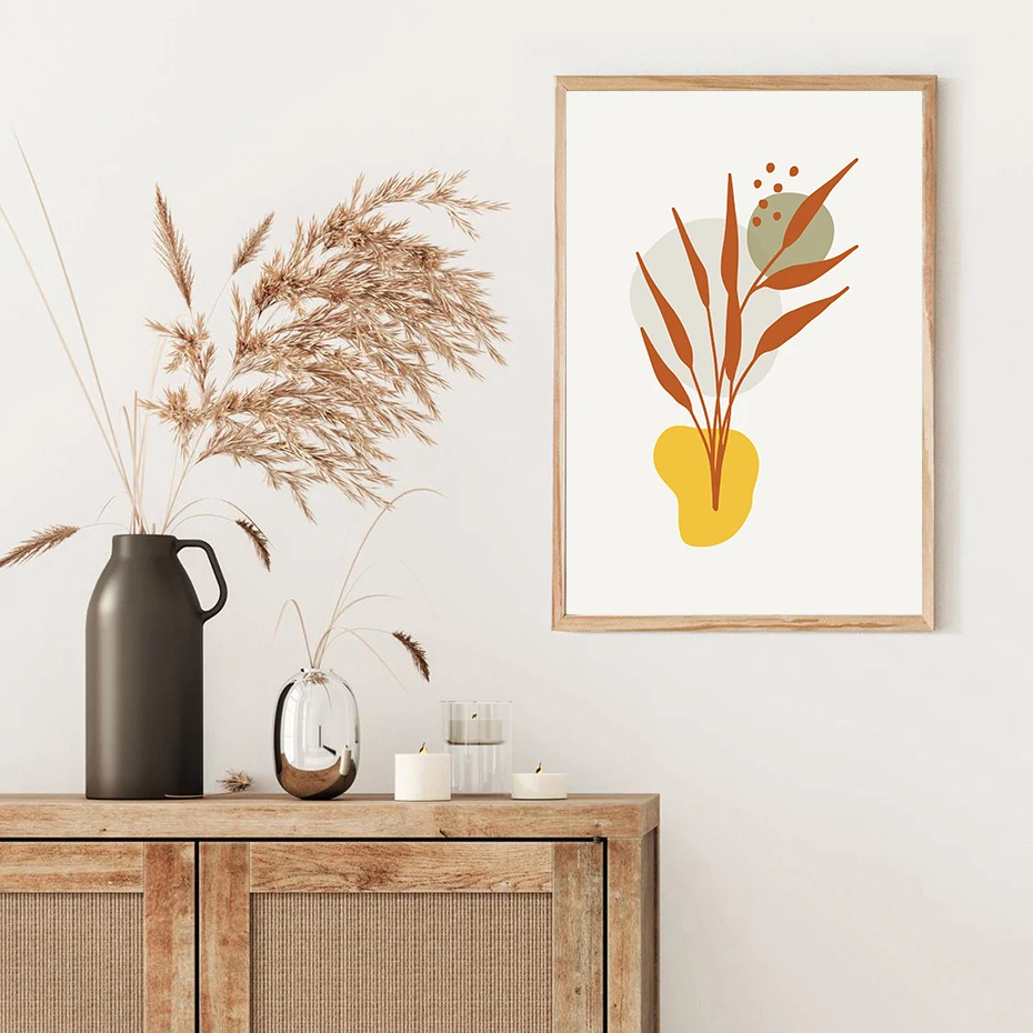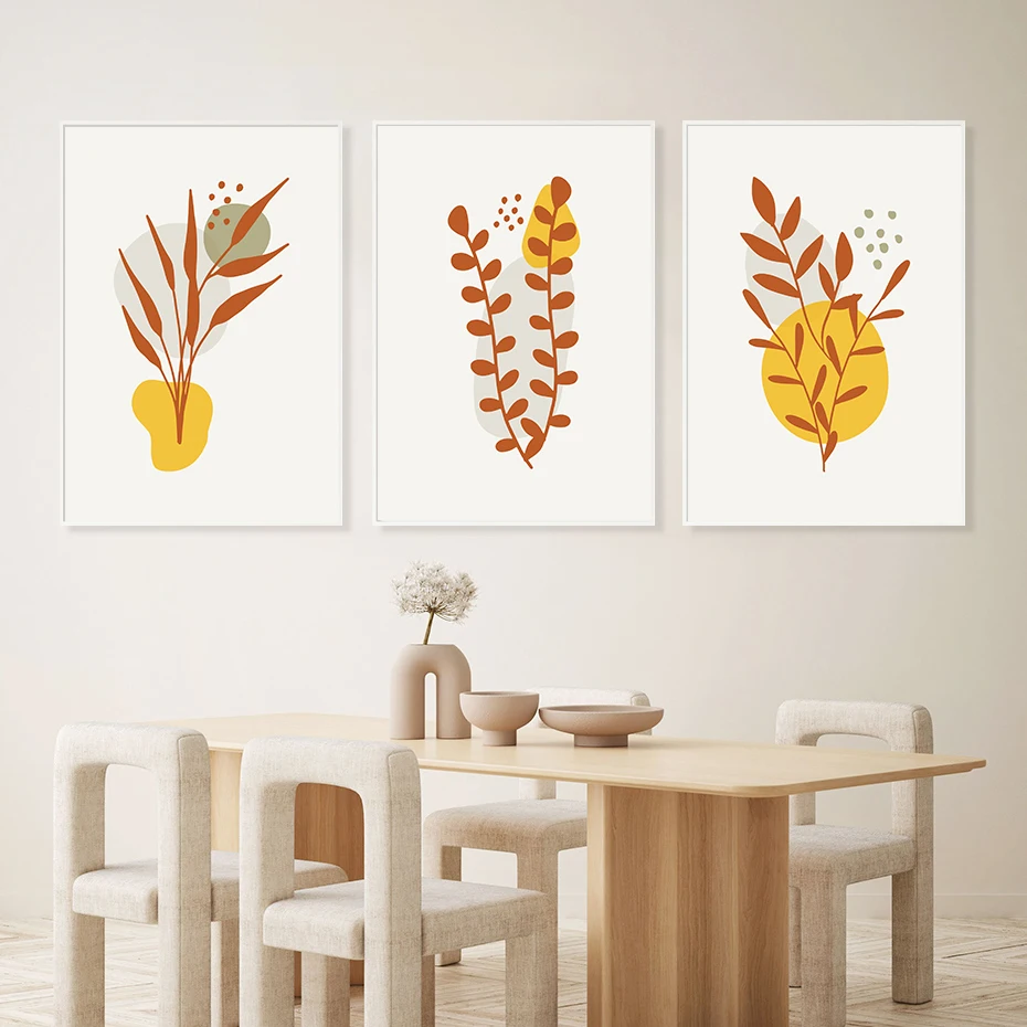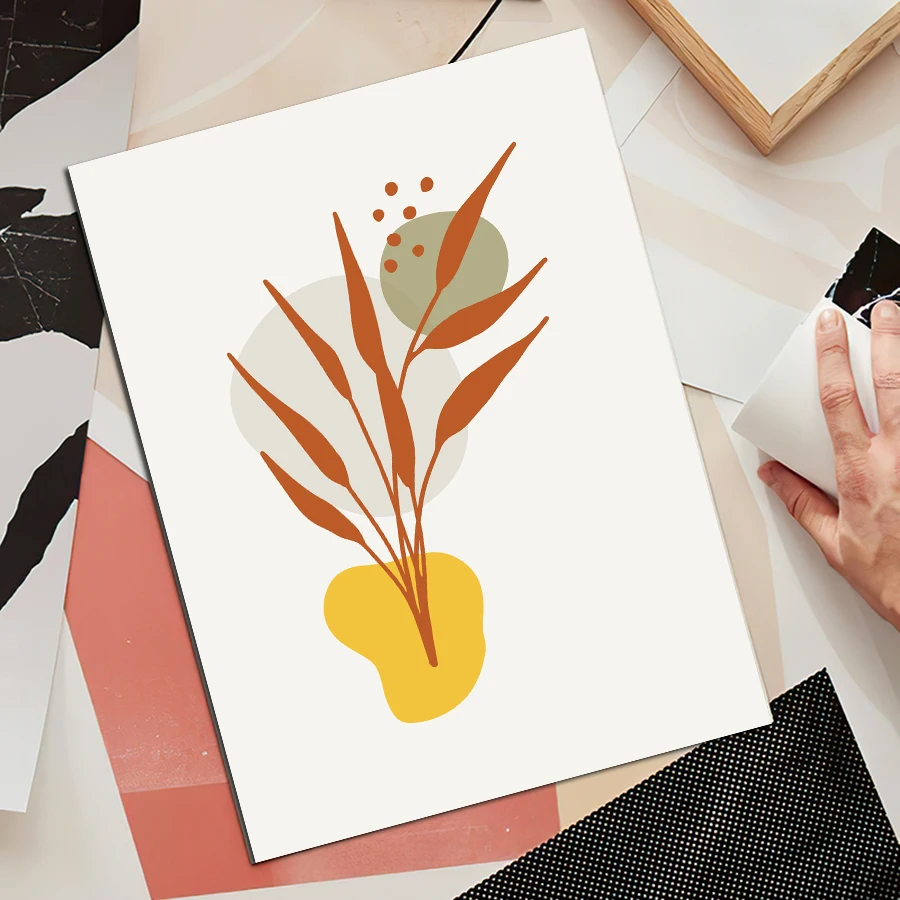 Абстрактный постер с цветами, листья растений, Скандинавская Настен...