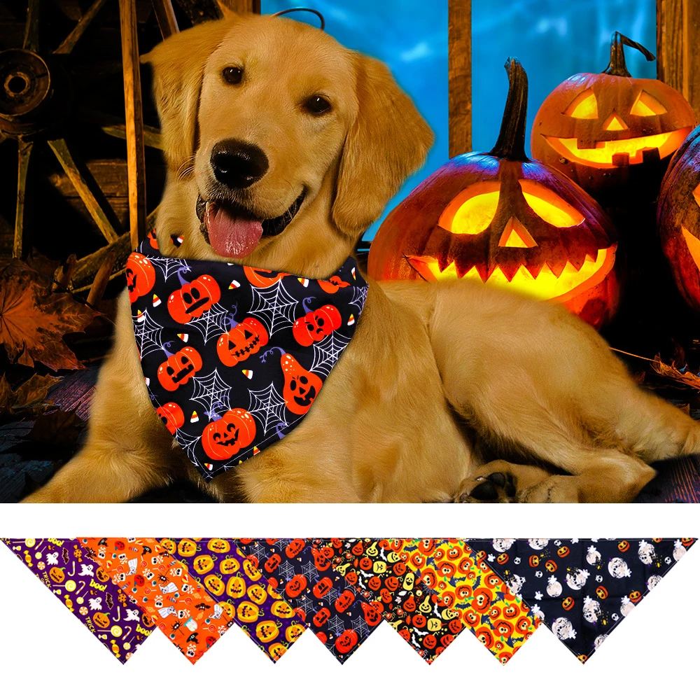 Бандана для Хэллоуина, моющаяся бандана для собаки, ошейник для щенка, шарф для котов, тыква, Череп, собака, бандана, аксессуары для собак