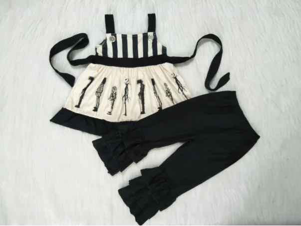 Детская одежда из мультфильма ужасы, лидер продаж 2021, наряд Кошмар на Рождество, Модный комплект из 2 предметов с колокольчиками для маленьких девочек