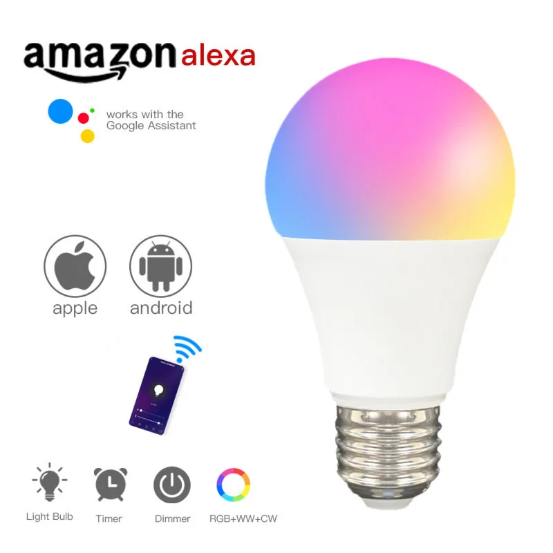 Умная лампочка с Wi-Fi 15 Вт B22 E27, светодиодная лампочка RGB CW, работает с AlexaGoogle Home 85-265 в