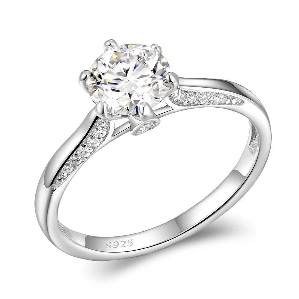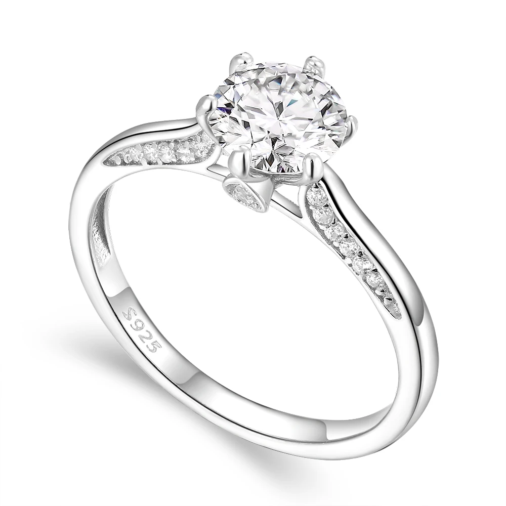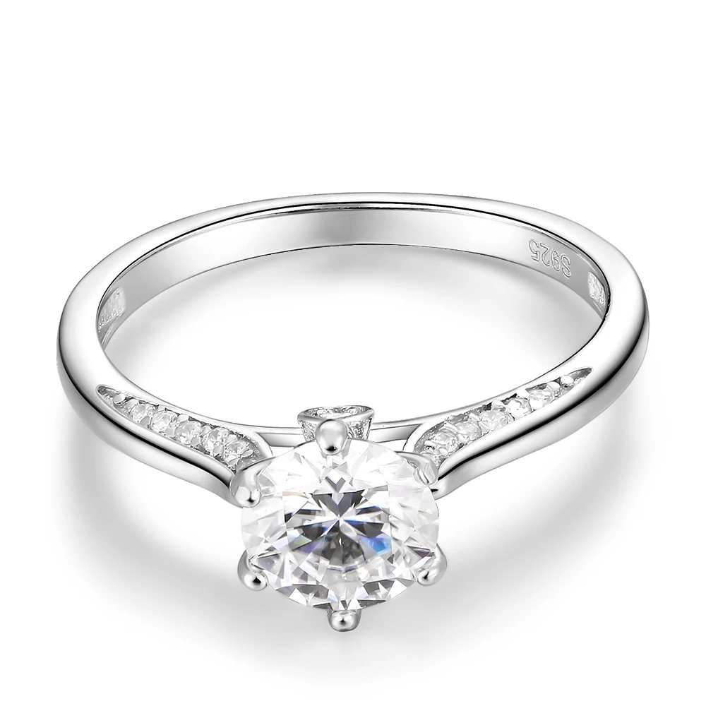 Женское кольцо из серебра 925 пробы, с муассанитом 1 карат