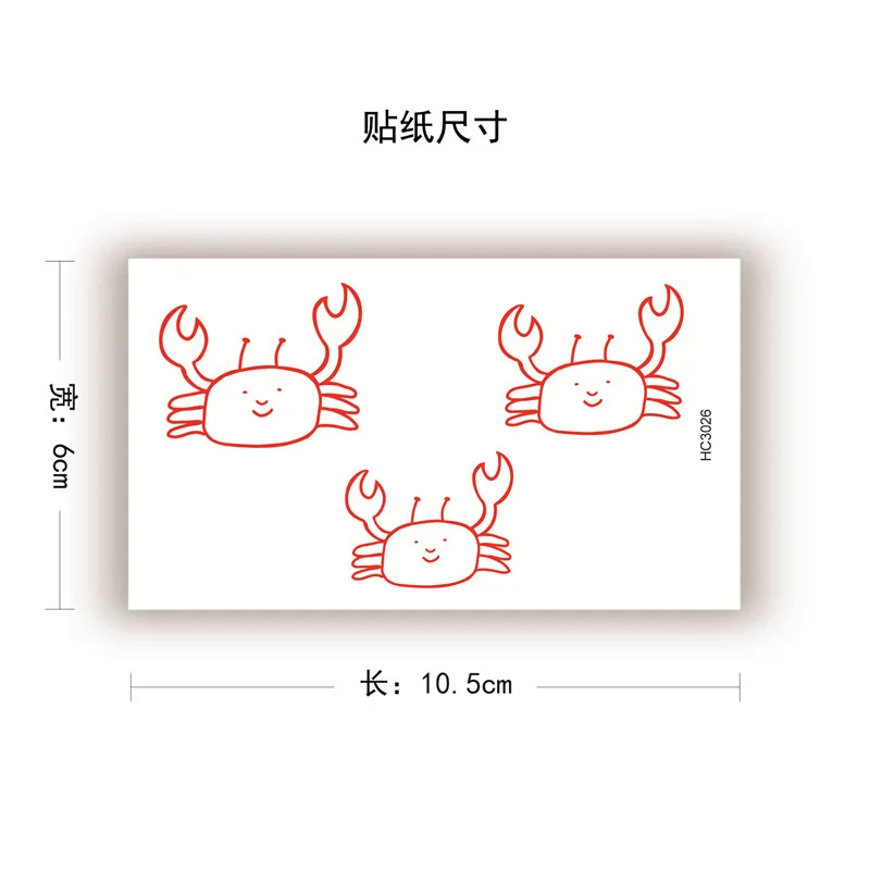 Водостойкая Временная тату-наклейка, красный маленький милый краб, ...
