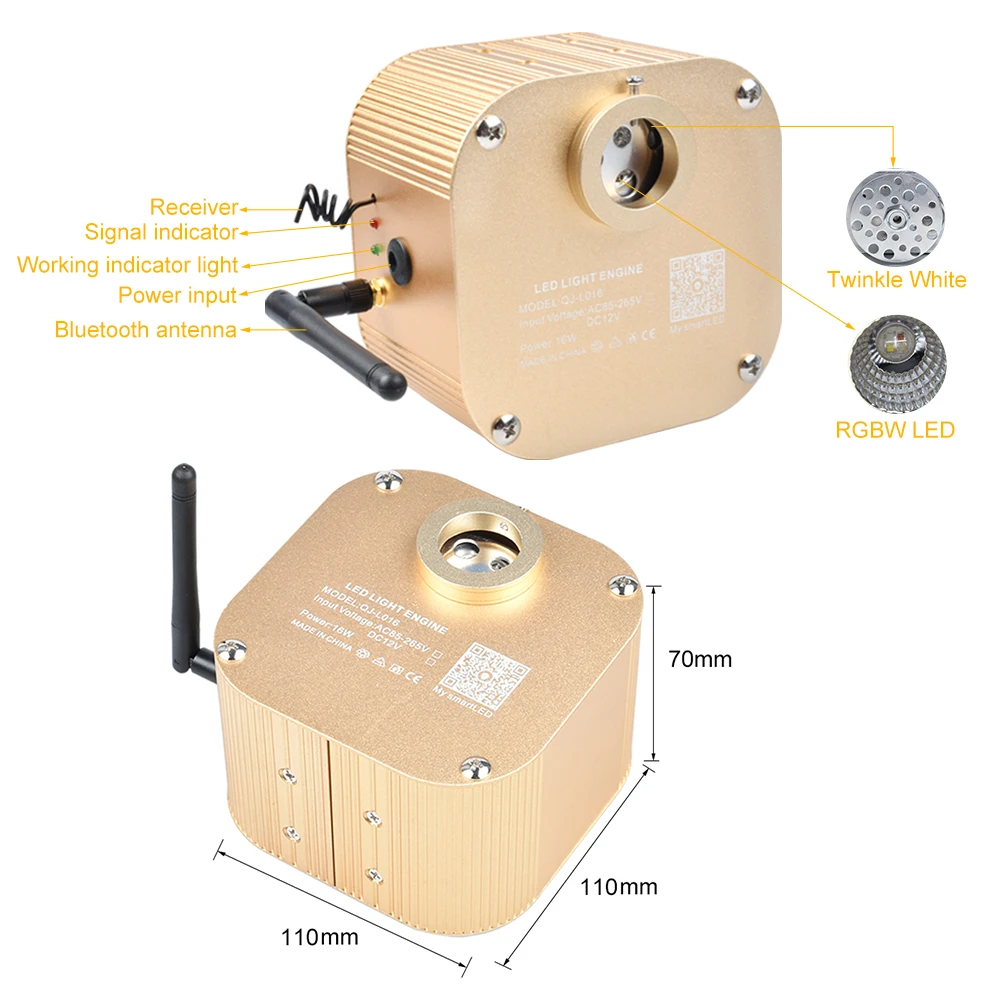 Волоконно-оптический светильник, 16 Вт, мерцающий, светодиодный двигательосветитель