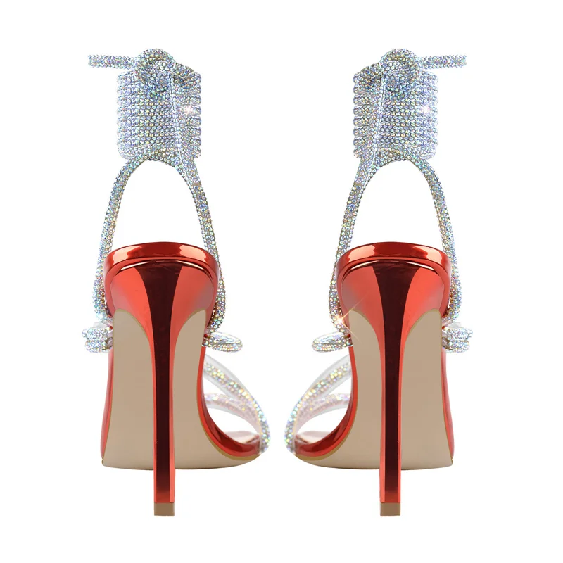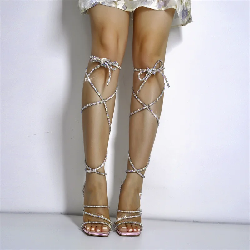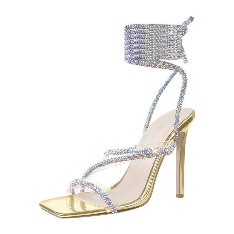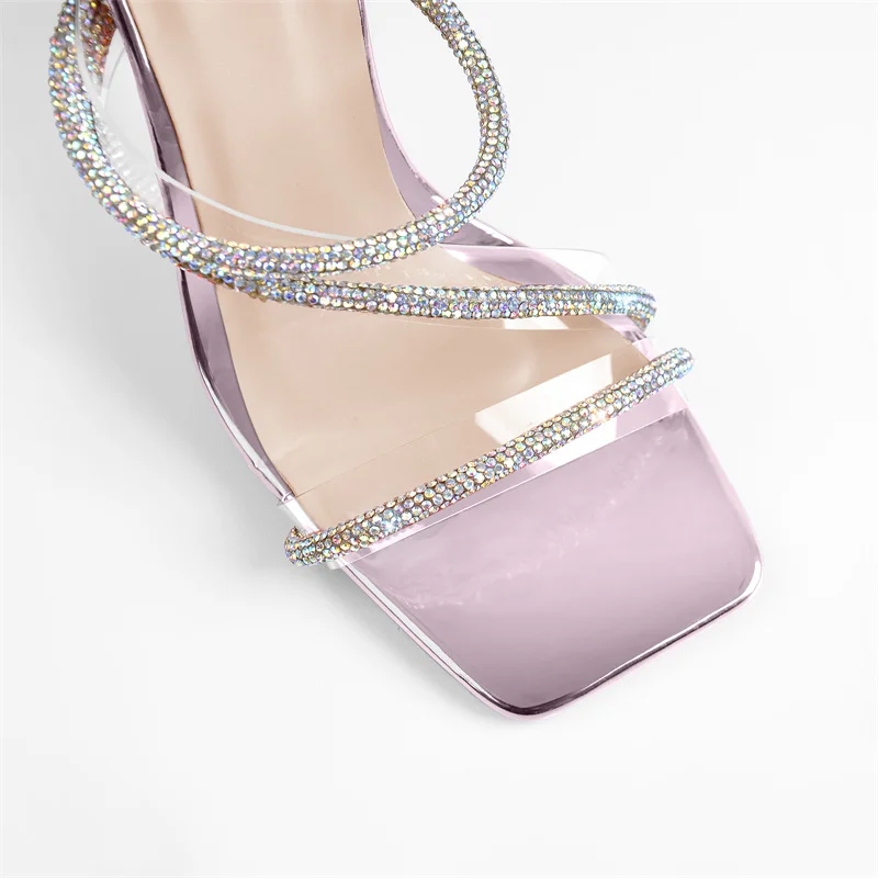 Женские сандалии на шпильках Onlymaker, разноцветные элегантные сандалии с квадратным носком, перекрестными ремешками из ПВХ, со стразами, на лето