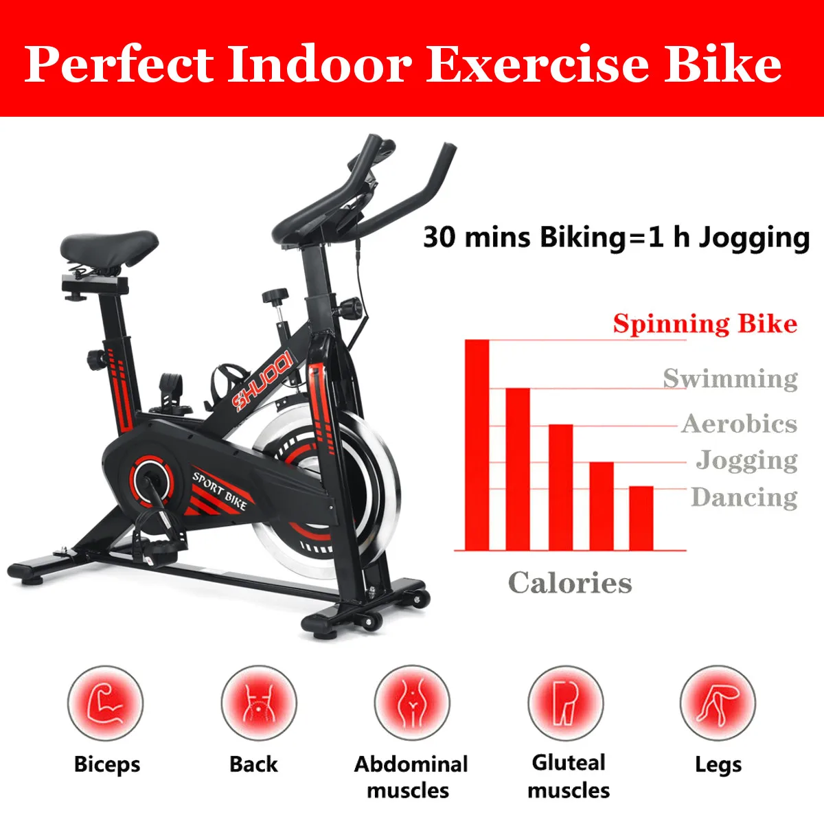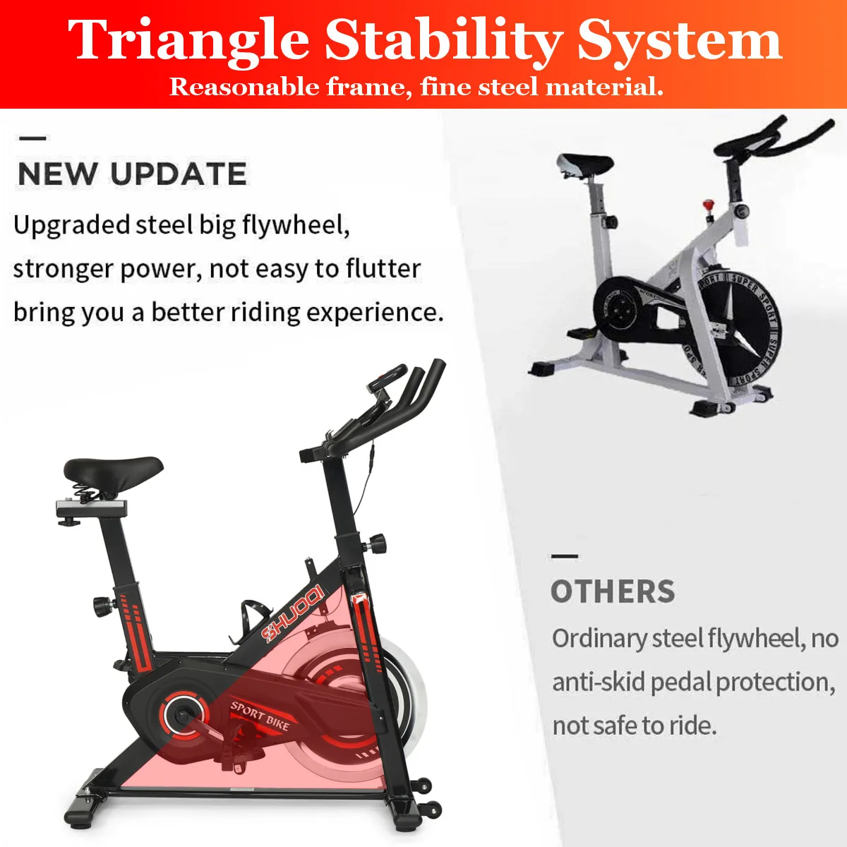 ★【Бесшумный дизайн】Использование уникальной технологии шумоподавления, эффективно снижает шум во время тренировки, не влияет на сон в соседней комнате. Система с ременным приводом обеспечивает более плавную езду, чем цепная транспортировка, Аварийная тормозная система может немедленно остановить велосипед. Транспортные колеса помогут вам легко перемещать этот велосипед.