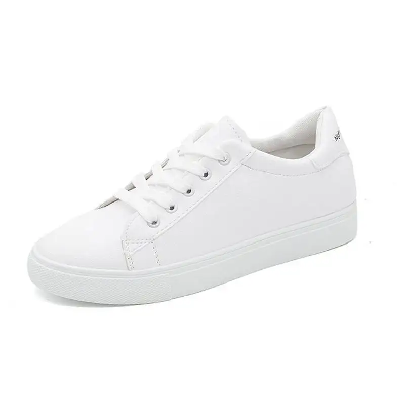 Кроссовки женские из ПУ кожи, Вулканизированная подошва, Классическая однотонная повседневная обувь, белые, весна