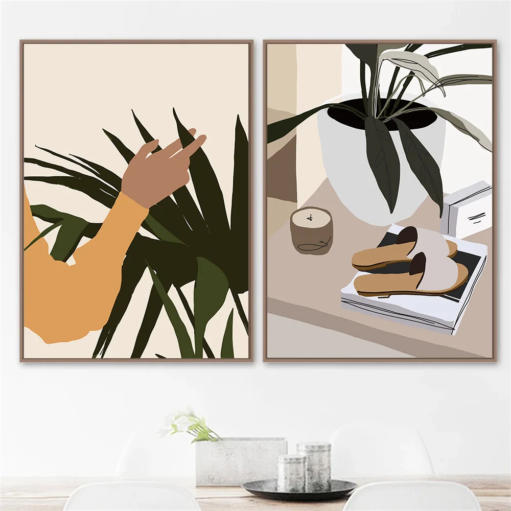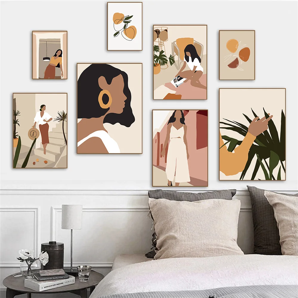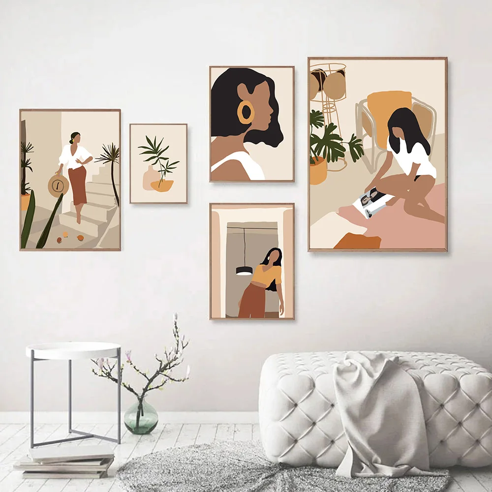 Абстрактный Модный женский постер в стиле бохо с принтом растений, винтажная Картина на холсте для девочек, настенные картины в скандинавском стиле, декор для спальни
