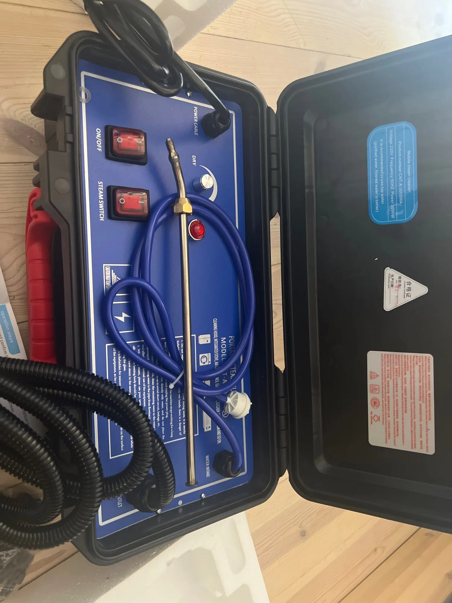Спецификация:Наименование: пароочиститель высокого давленияМодель: E84073Материал: пластик и металлРазмер машины: 40х23х17 смВпускная труба Длина: 1,2 мМощность кабель Длина: 1,8 мПаропровод Длина: 2,5 мНапряжение: 220 ВМощность: 3000 ВтРасход воды: 200-500 мл/мин.Давление пара: 300-350 кПаРабочая температура: >100 ℃ (макс. 120 ℃)Применение: легко удалить масло, пыль, дезинфекция, 360 ° всесторонняя Чистка