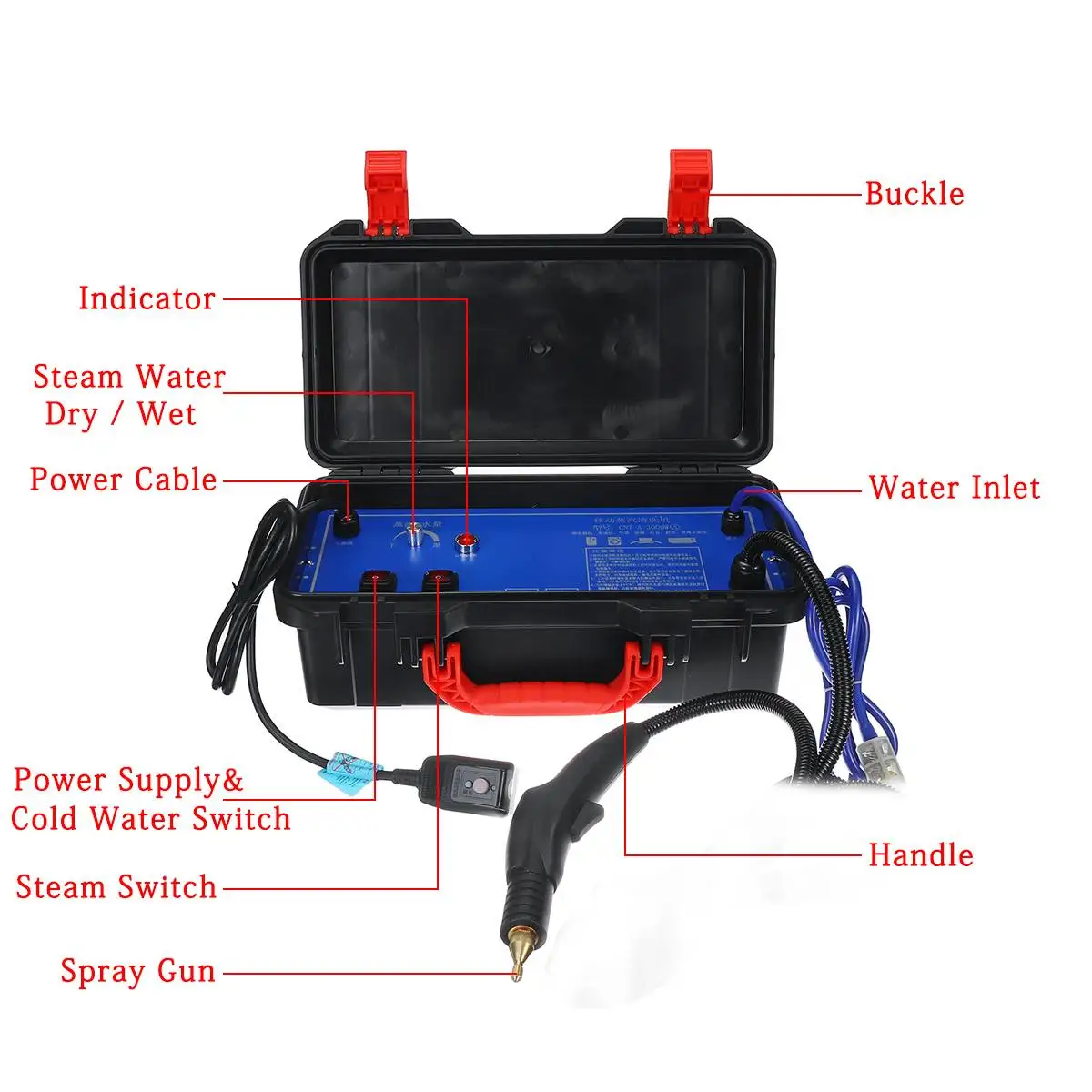 Особенности:-Изделие изготовлено из алюминиевого сплава и имеет хороший эффект сбора тепла.-Быстрое обезжиривание, температура может достигать около 100 °C.-Экономия энергии, короткое время, меньше воды, не добавляется моющее средство.-Через высокотемпературный пар высокого давления и сильную силу распыления, с анти-сухой, автоматический контроль температуры сброс множественной защиты.-Часть газификации имеет круглую конструкцию с одинаковыми входными и выпускными отверстиями. Мгновенно испаряется.-Ультратонкий дизайн, маленький и изысканный, прочный пластиковый корпус, новые материалы (огнестойкие, теплоизоляционные, непроводящие), безопасны в использовании.-Операция проста, и выключатель включается напрямую.