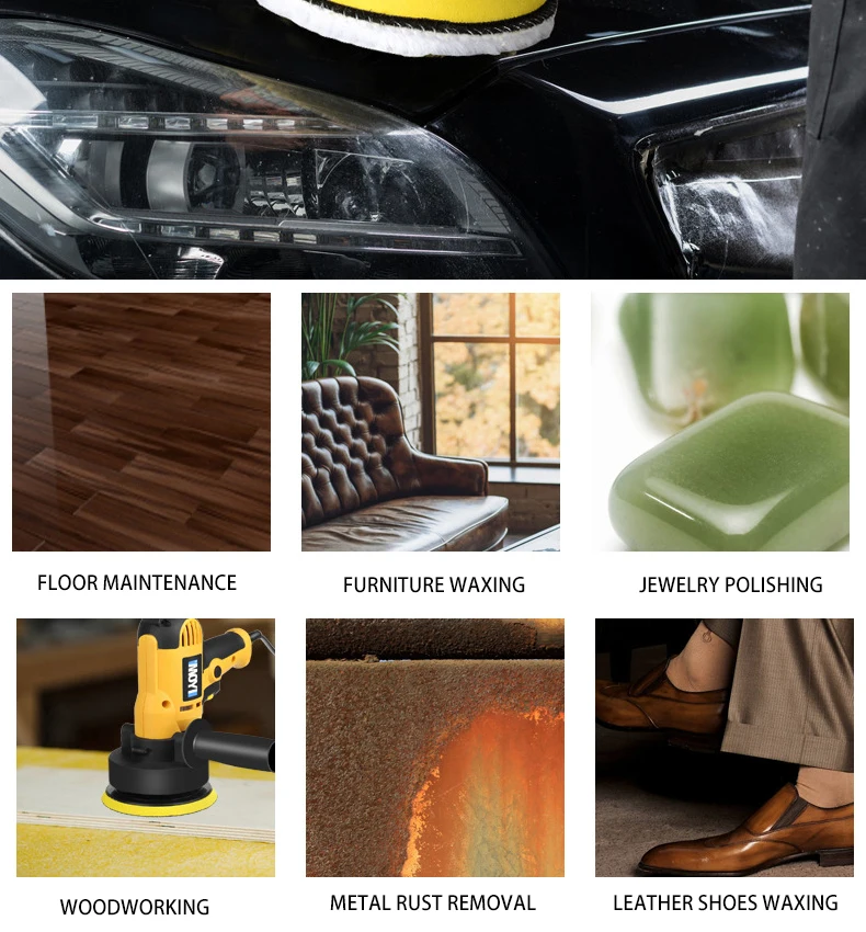 Эта полировальная машина не только подходит для автомобилей, но и отлично подходит для домашнего использования, например, для напольного воска, удаления накипи металла, обрезки мебели, полировки нефрита и т. д.