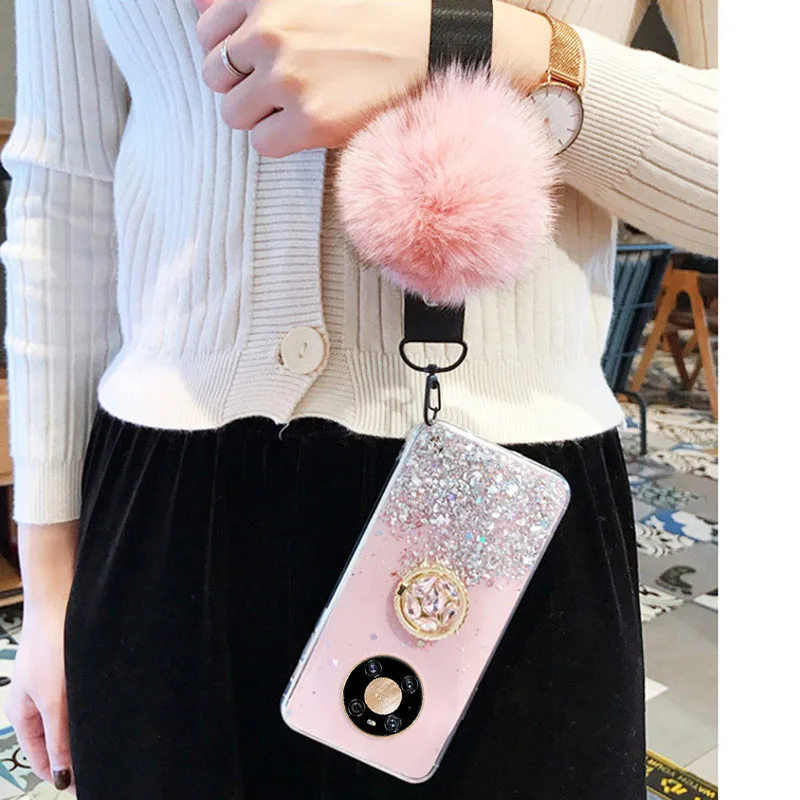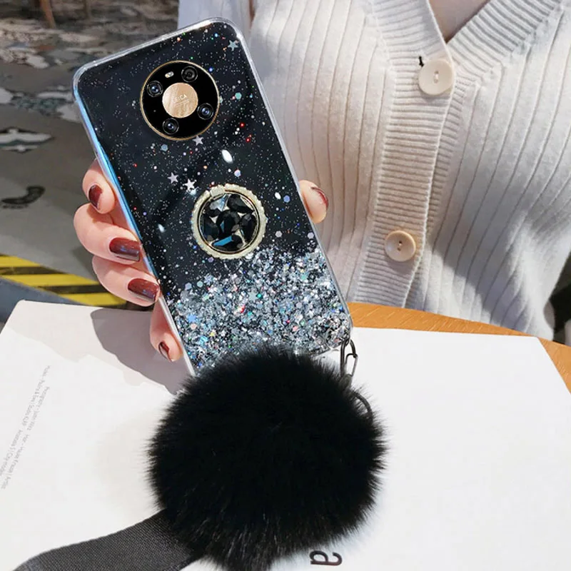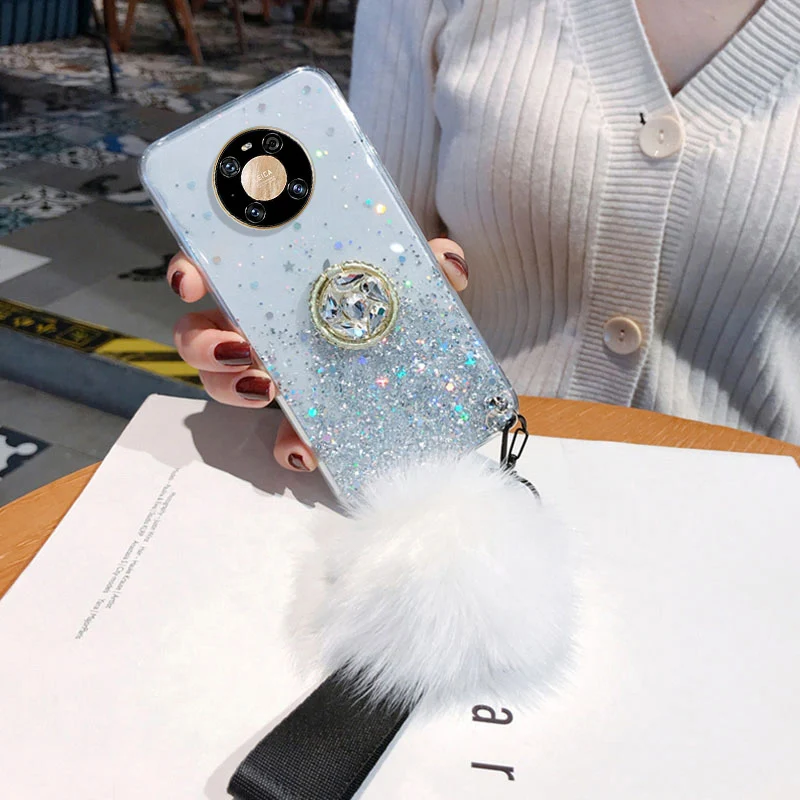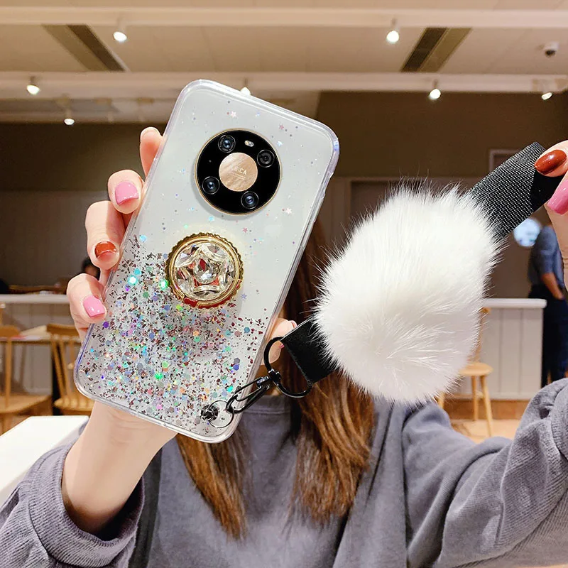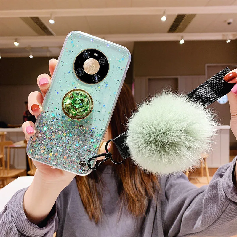 Чехол для Huawei Mate 20 10 Lite, блестящее кольцо с подставкой, чехол для Huawei Mate 40 30 Pro, чехлы для телефонов с помпоном для волос, чехол-бампер