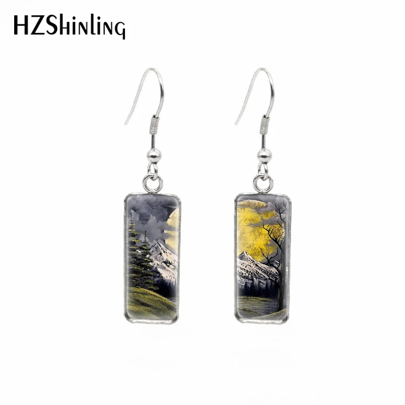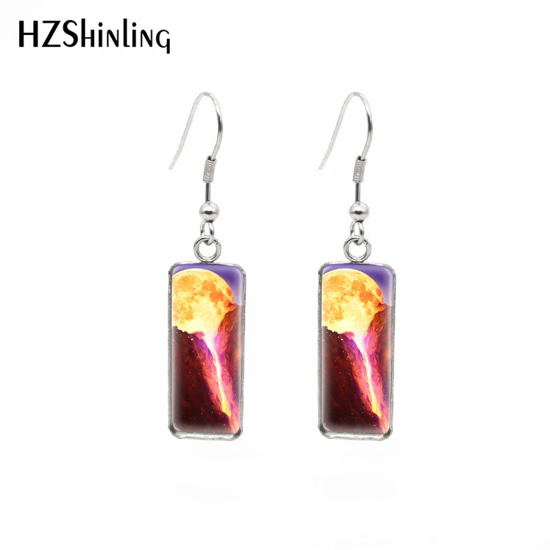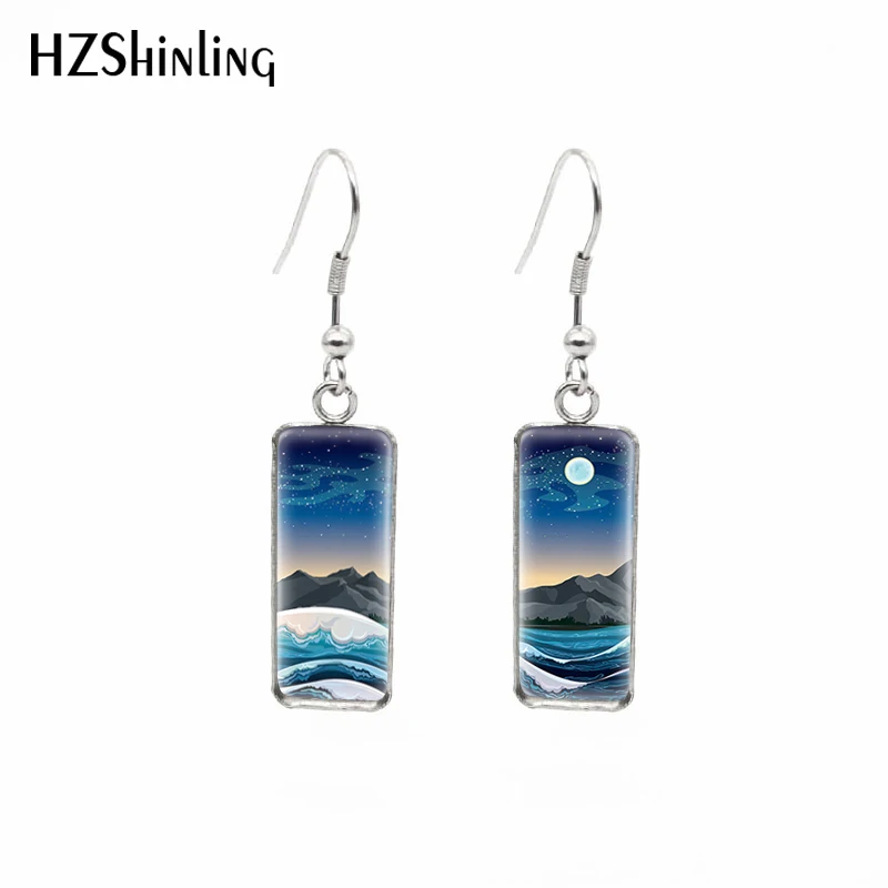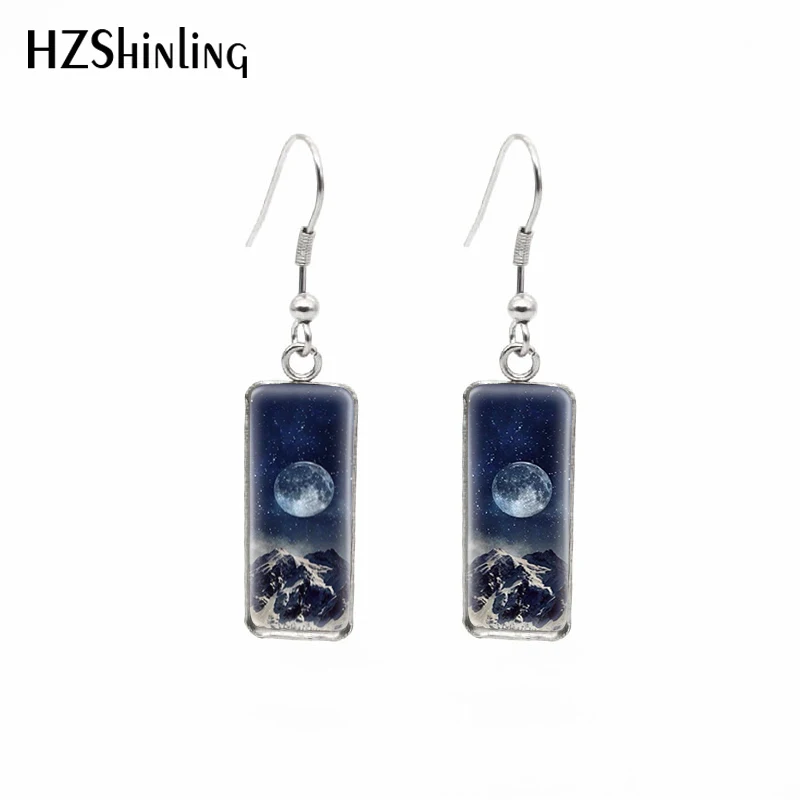 Новинка 2021, прямоугольные серьги в виде Луны и гор, серьги-Крючки с рисунком рыбы, стеклянный кабошон, ювелирные изделия ручной работы