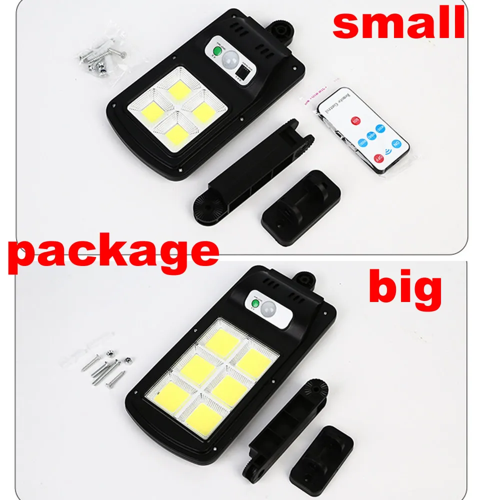 Большой размер 120 COB светодиодный светильник на солнечных батареях, светильник на солнечных батареях, садовый светильник на солнечных батареях, настенный светильник с датчиком движения PIR, водонепроницаемый инфракрасный датчик, светильник, 3 режима работы, вращающийся кронштейн с пультом дистанционного управления, аккумулятор 2200MHA