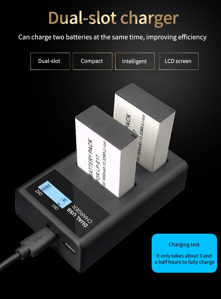 LPE17 LP E17 LP-E17 Батарея + ЖК-дисплей USB Dual Зарядное устройст...