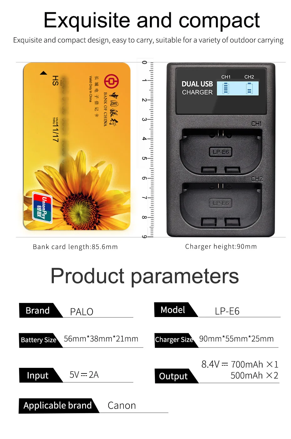 Зарядное устройство PALO с ЖК-дисплеем и двумя слотами для фотоаппа...