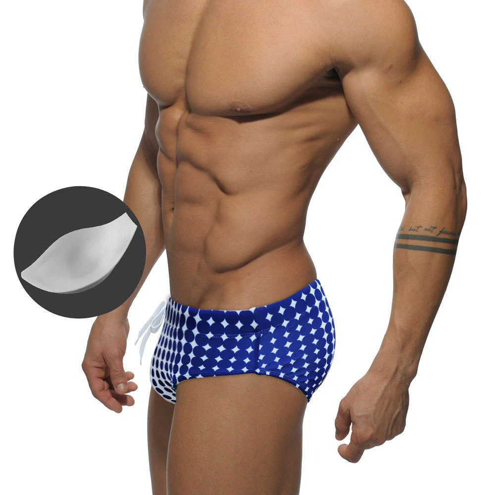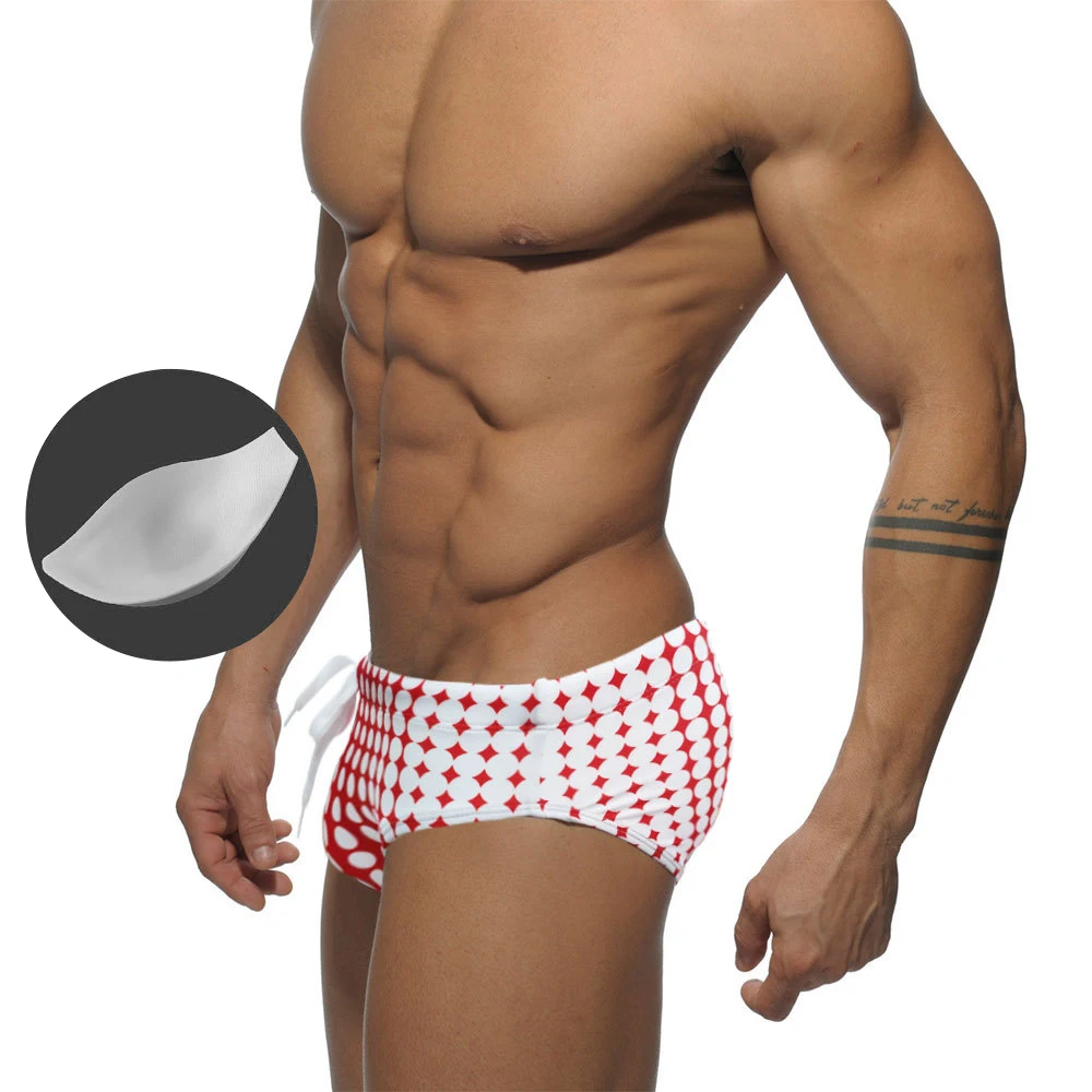 Плавки мужские, с заниженной талией, в горошек, с пуш-подкладкой