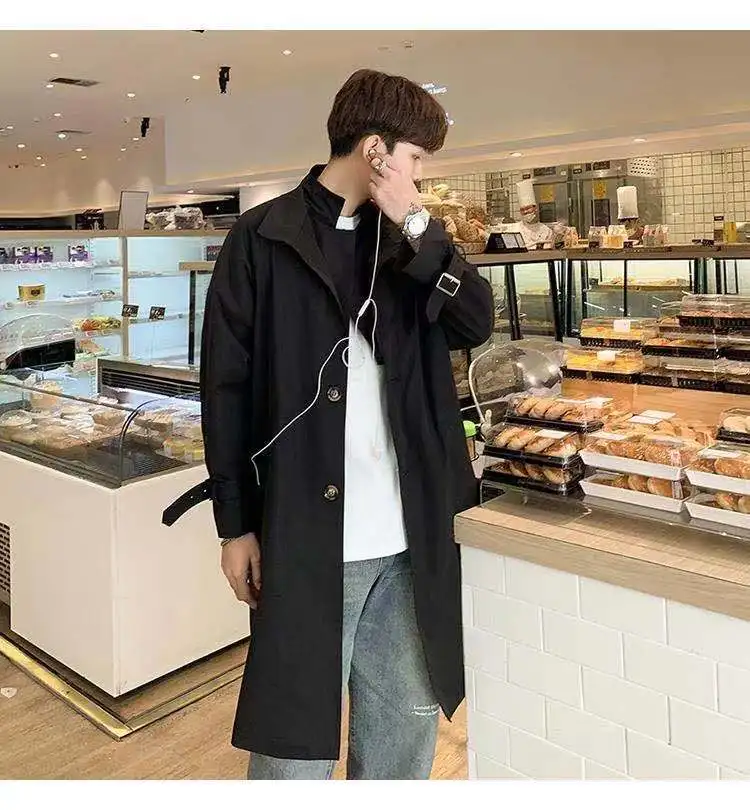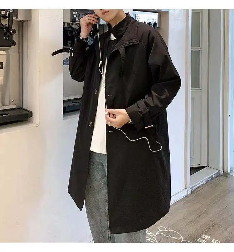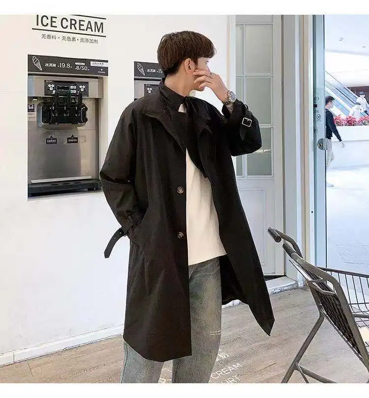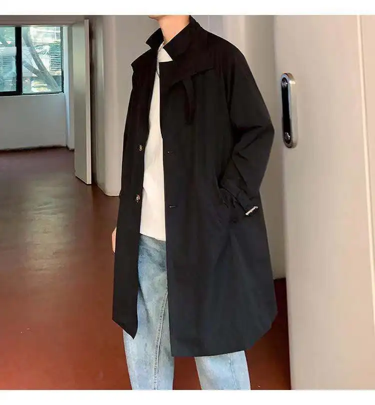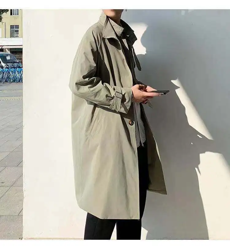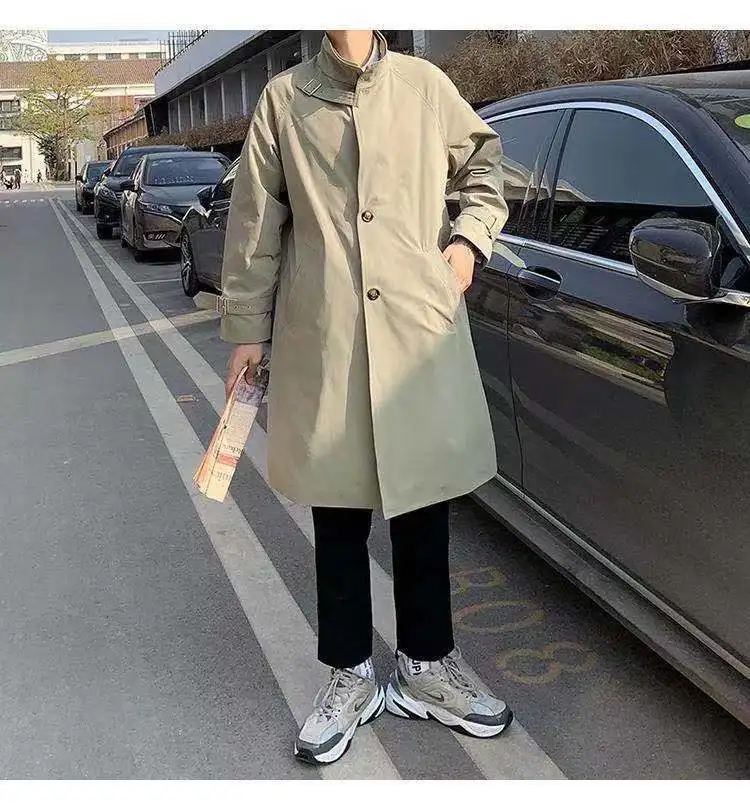 Мужская куртка-бомбер средней длины, модная трендовая верхняя одежда в Корейском стиле, свободные пальто с воротником, зеленыйчерный Тренч, свободная ветровка, 2021