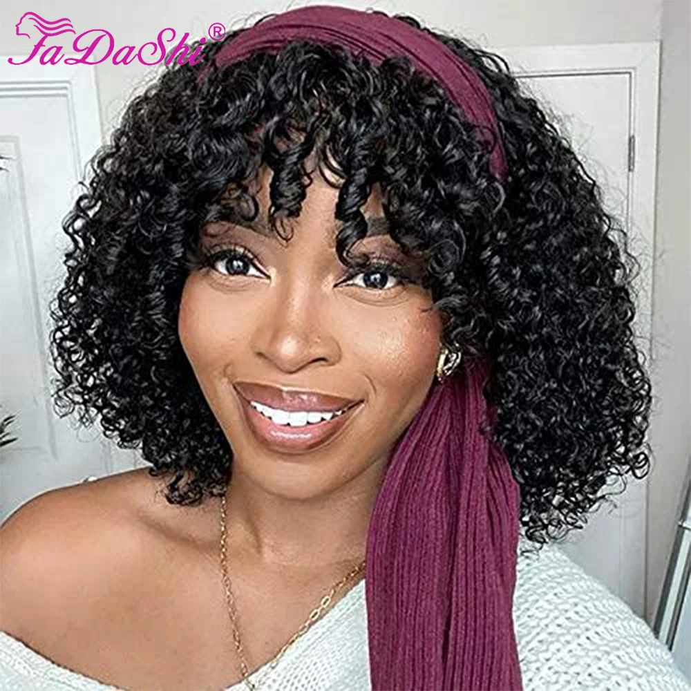 Парик Короткий Боб, парик с головной повязкой натуральные волосы, кудрявый, бразильский, полностью машинно изготовленный для чернокожих женщин, парик из натуральных волос с крупными волнами