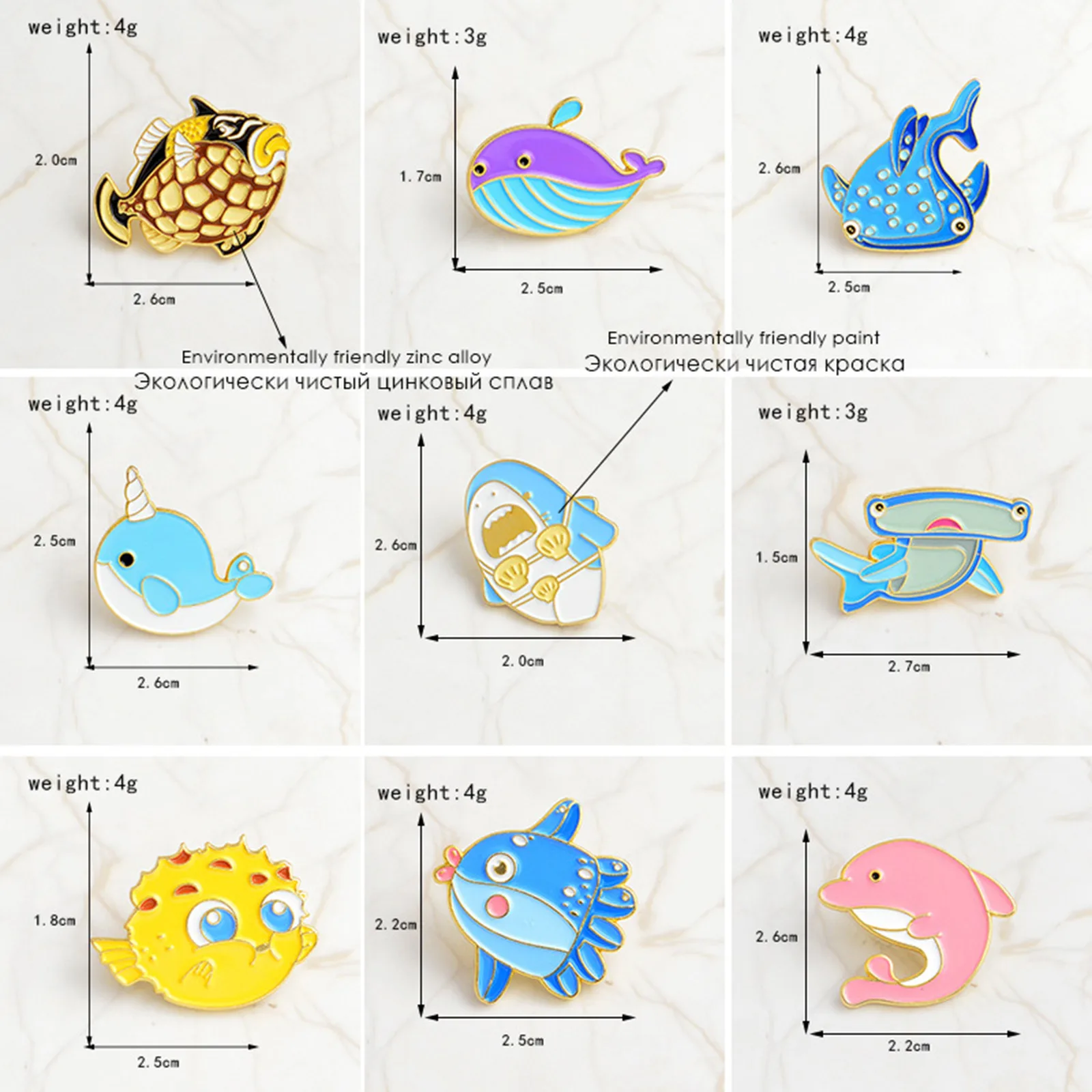 Морской Cuties Pin Китовая акула Нарвала Осьминог рыбный шар эмали ...