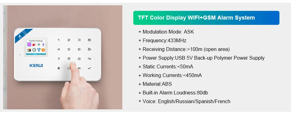 1.KERUI W18 использует только 2G sim-карты (850/900/1800/1900 МГц), и друзья из США и Австралии, пожалуйста, свяжитесь с нами.2. KERUI W18 работает только с частотой 2,4G WIFI.