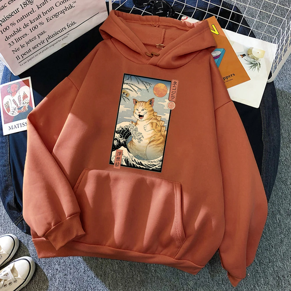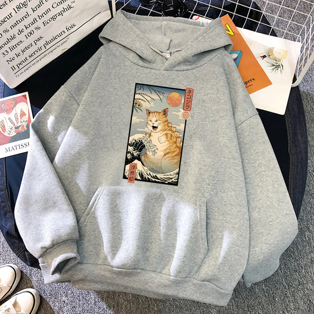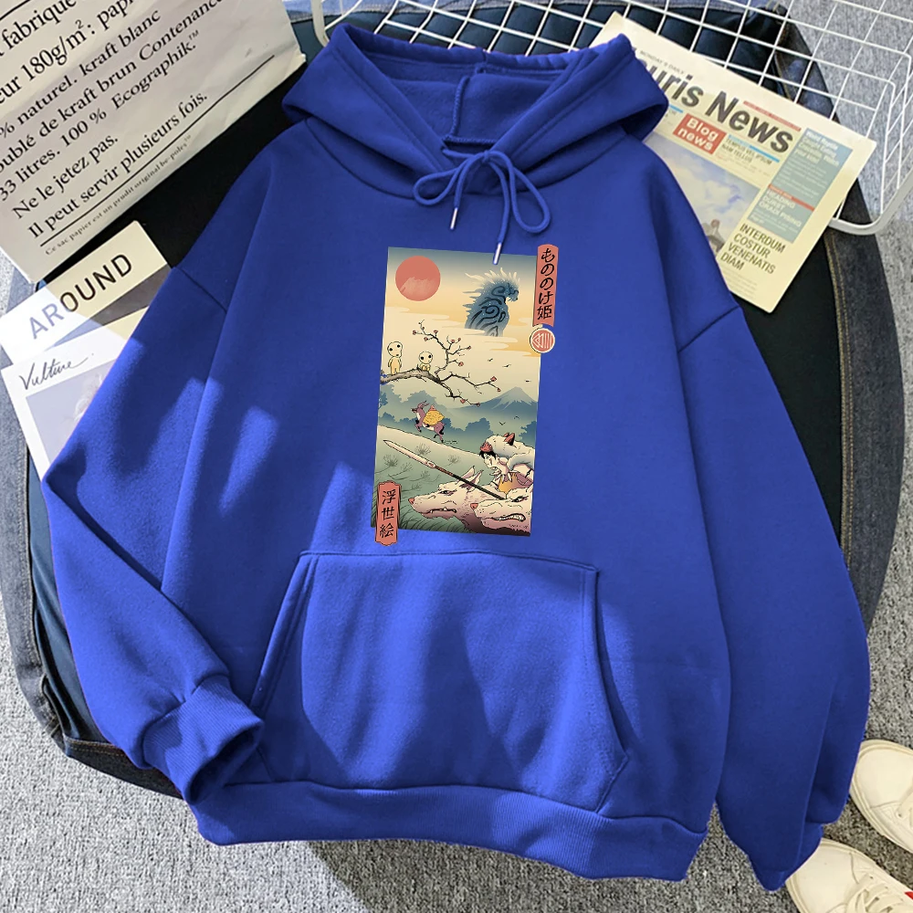 Худи мужское флисовое в стиле укиё-Э, Свитшот в японском стиле принцессы волка, повседневный тренировочный костюм в стиле Харадзюку, уличная одежда оверсайз, осень