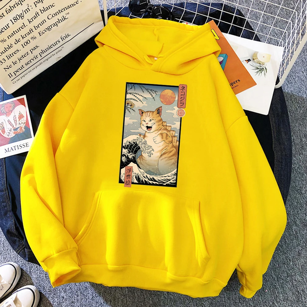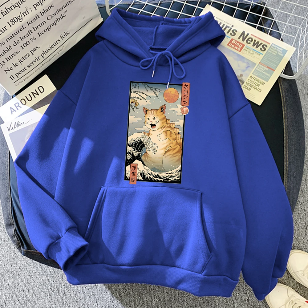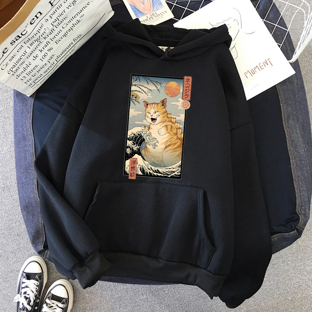 Японский Забавный костюм, мужская толстовка с принтом кота, Флисова...