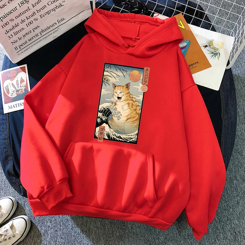 Neko Ramen Ukiyo-e Japan Comics Print Clothing Male Pattern Oversiz...