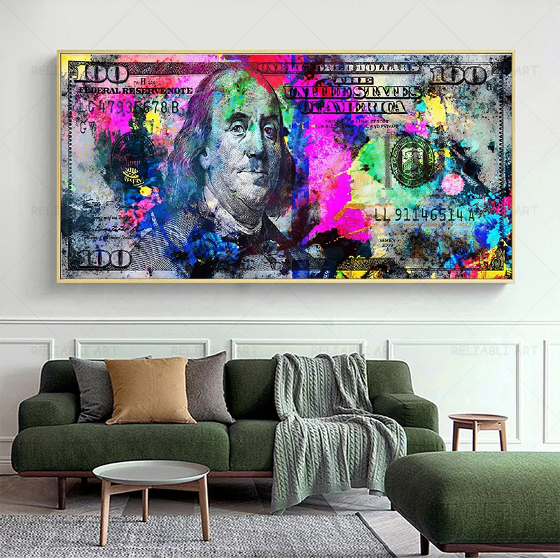 Абстрактный постер, настенное искусство, золотой, современный, популярный, красочный, сто денег, холст, живопись Quadro, уличное искусство, Настенная картина, домашний декор