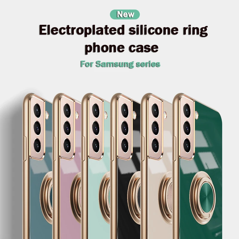 Роскошный Магнитный Гальванизированный силиконовый чехол с кольцом для телефона Samsung Galaxy S21 S20 FE Plus Note 20 Ultra S21 + A72 A52, задняя крышка