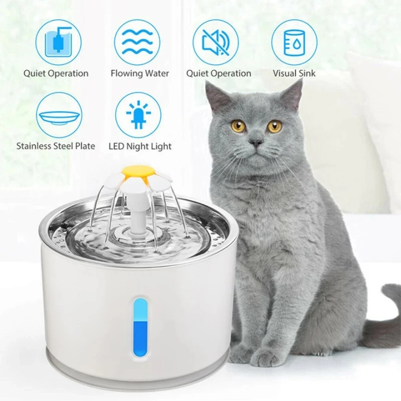 Электрический питьевой фонтан для кошек, 2,4 л, с фильтром из активного угля