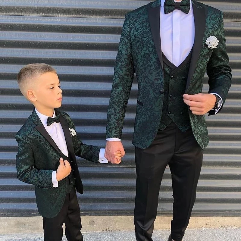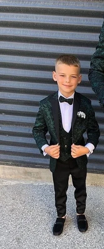Мужские костюмы для мальчиков 3 шт., зеленый приталенный женский официальный Блейзер, Детский костюм для выпускного, куртка + брюки + жилет