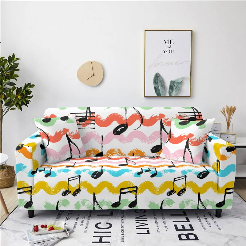 Цветные Чехлы для дивана с музыкальными нотами, эластичные Чехлы дл...