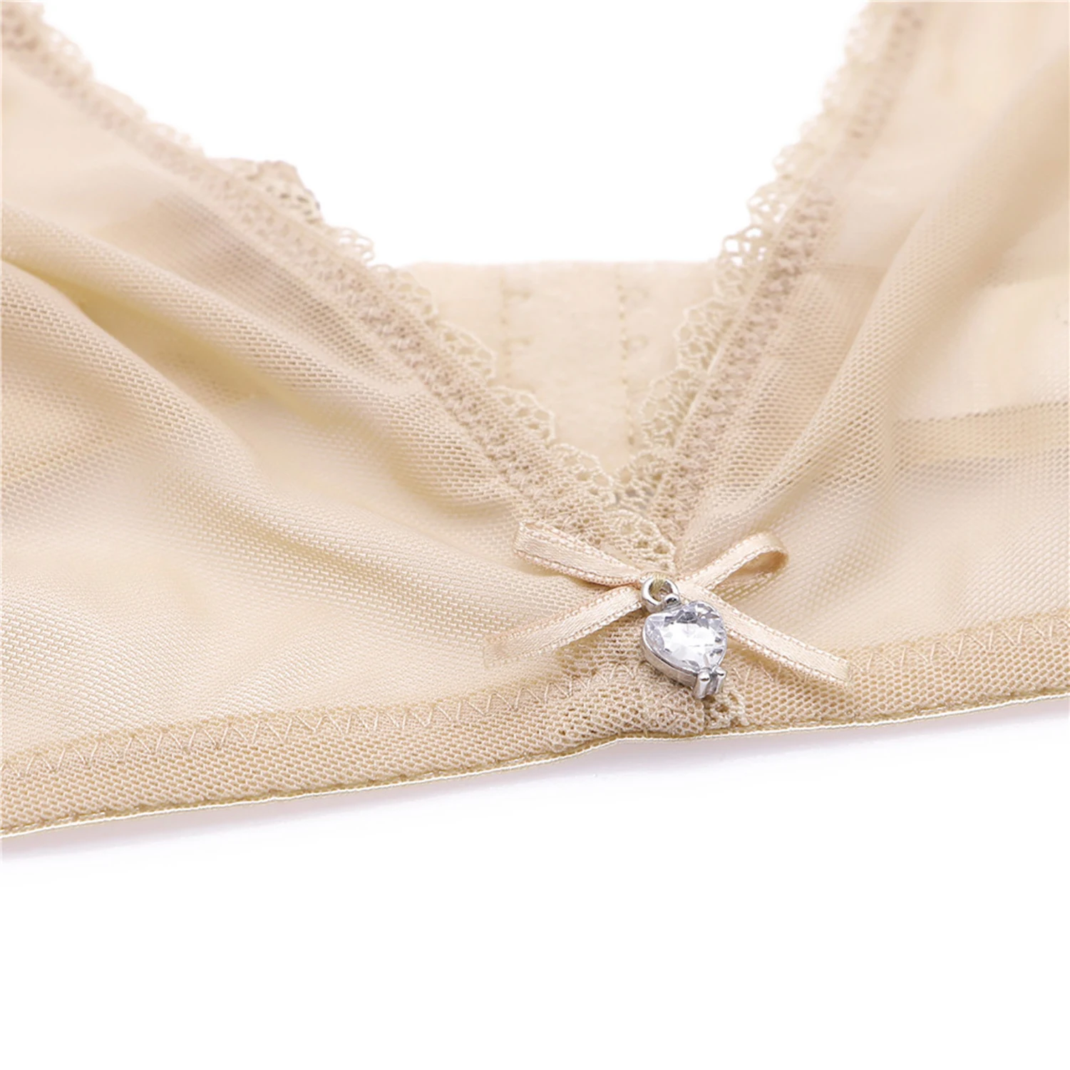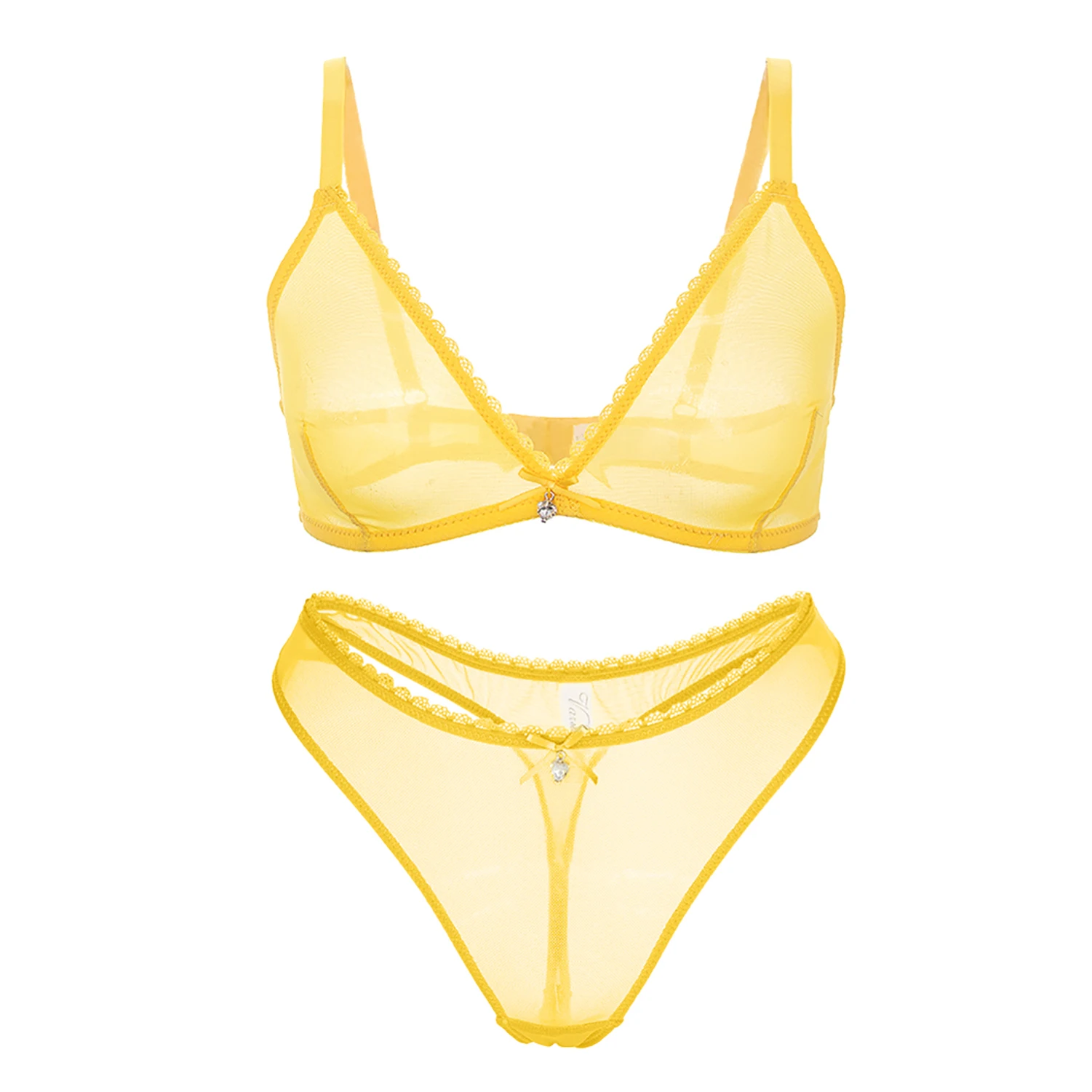 Комплект нижнего белья из прозрачного бюстгальтера и стрингов с глубоким V-образным вырезом