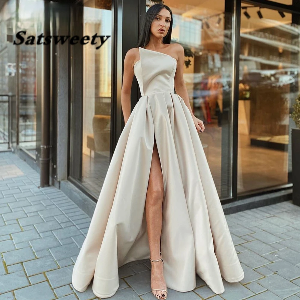 Элегантные вечерние платья без бретелек, а-силуэт, с Боковым Разрезом, атласные платья для выпускного вечера, специальное вечернее платье, платья для вечеринок