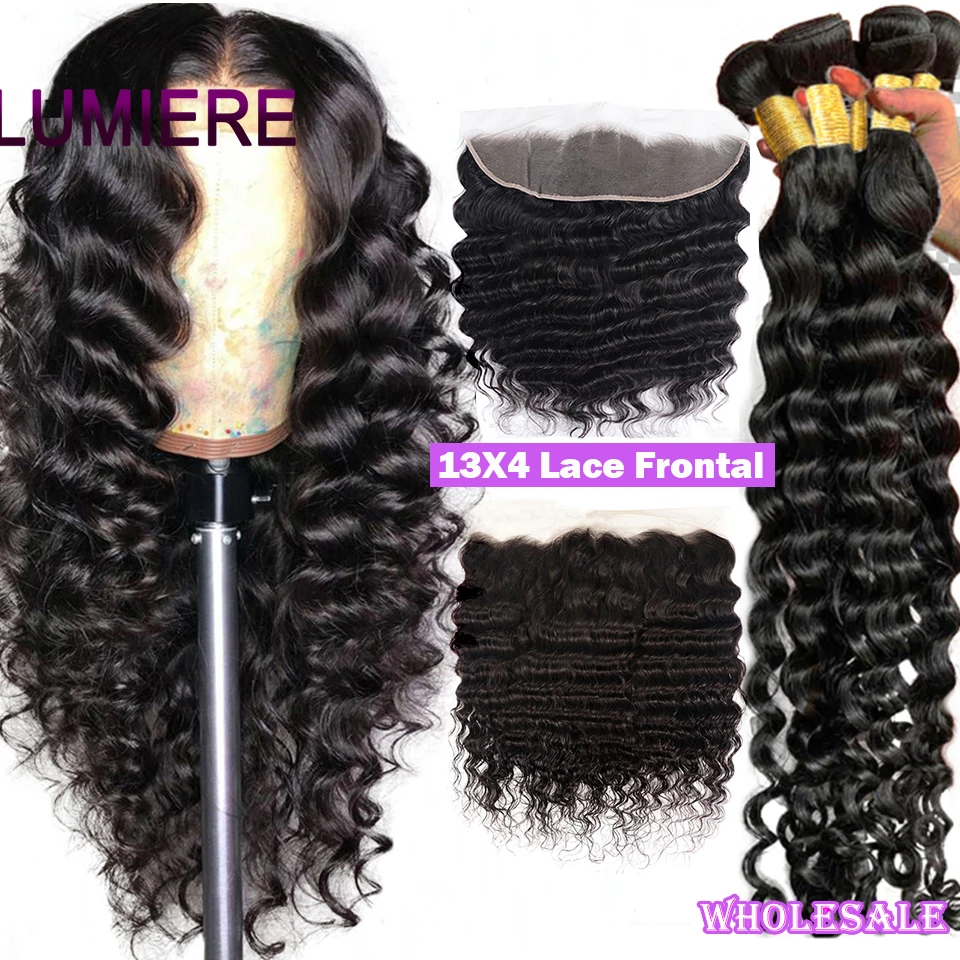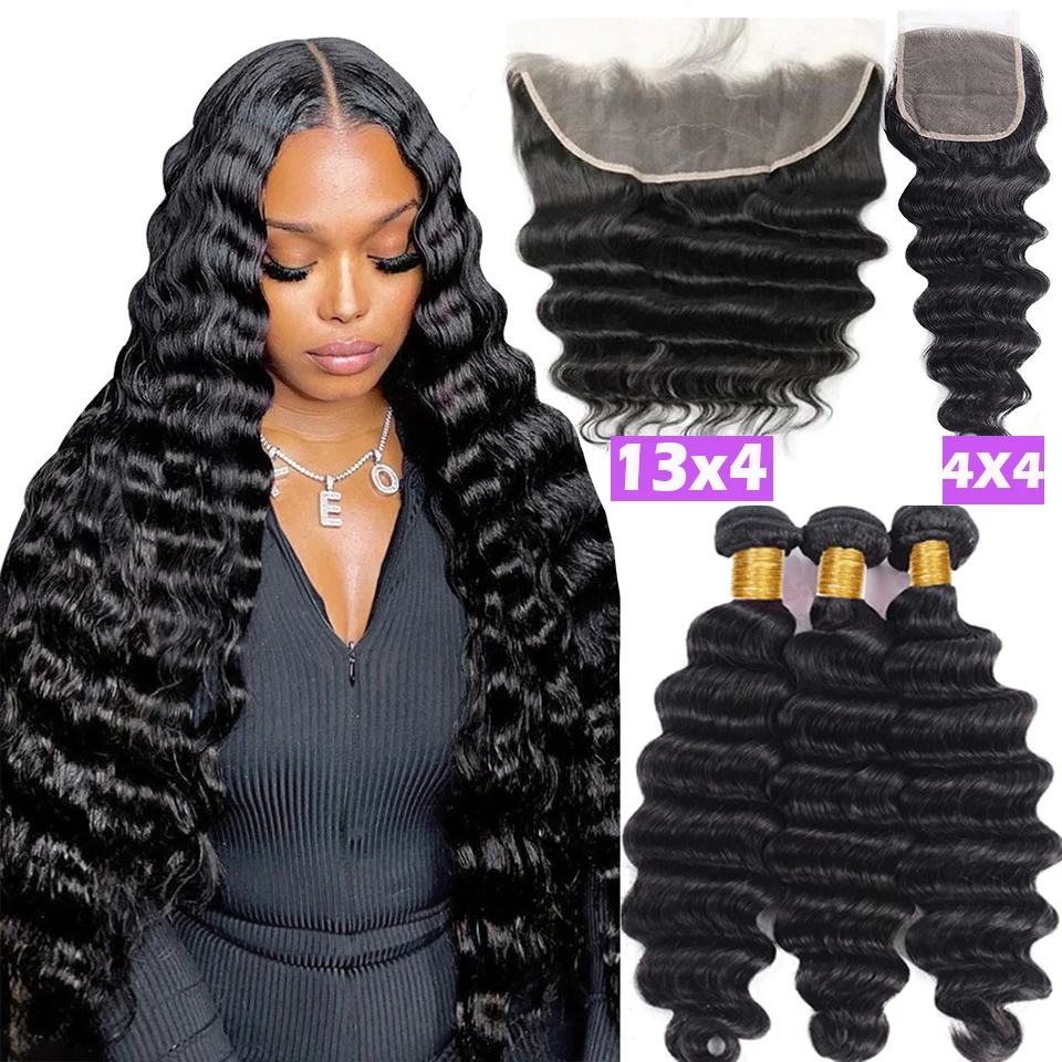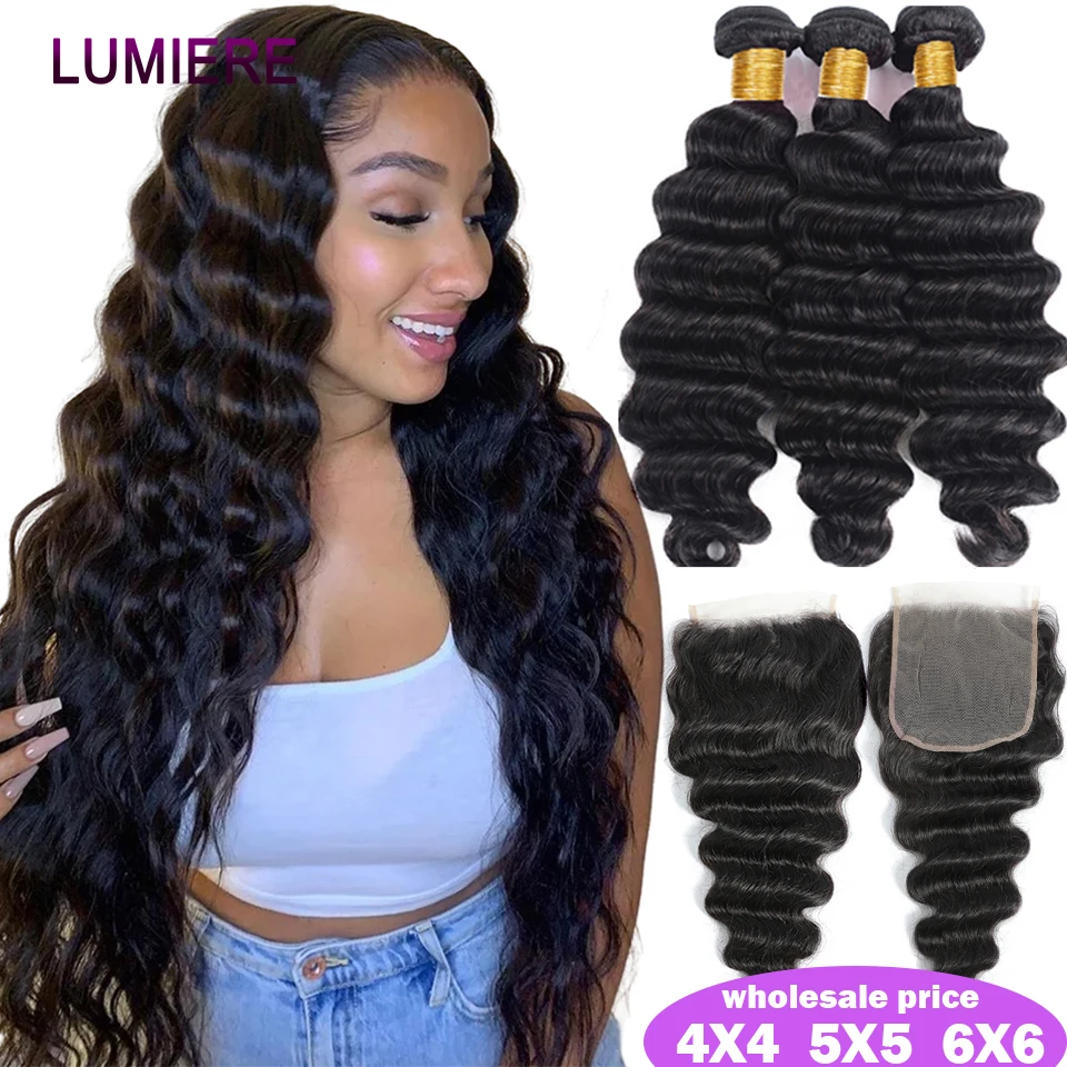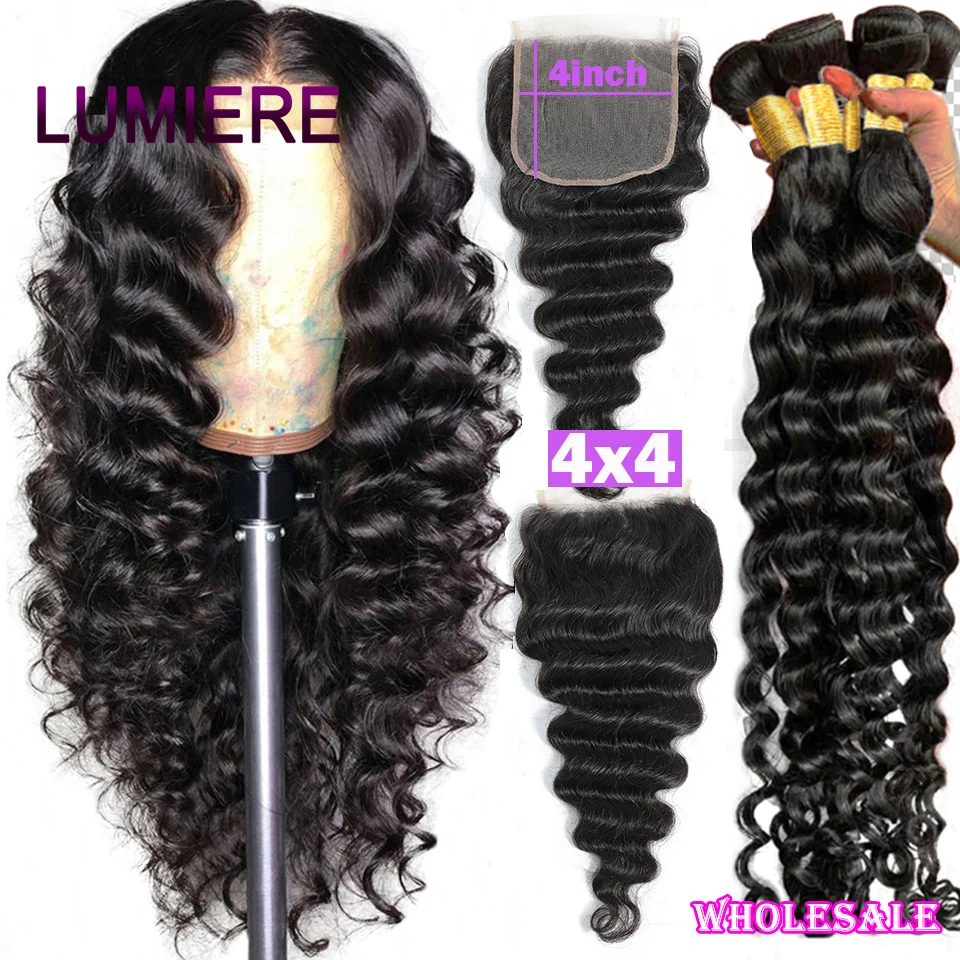 3040-дюймопряди свободных глубоких волн с застежкой, перуанские пупряди волнистых волос с застежкой спереди, 100% наращивание человеческих волос Remy