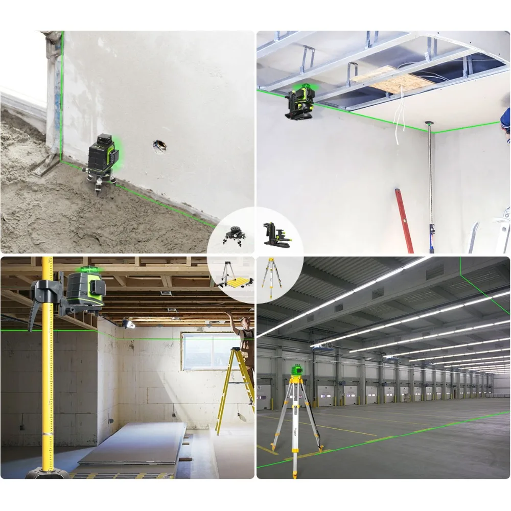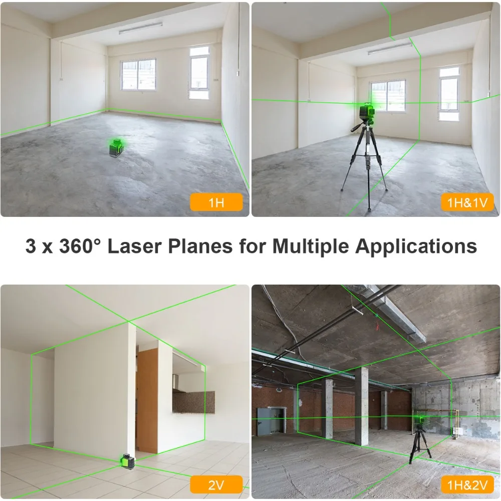 Этот лазерный уровень проектирует три лазерных линии зеленого луча на 360 ° лазерных плоскостях-один горизонтальный и Два вертикальных, так что пользователи могут точно и быстро выполнять уровень, выравнивать, квадратные и плащи приложения