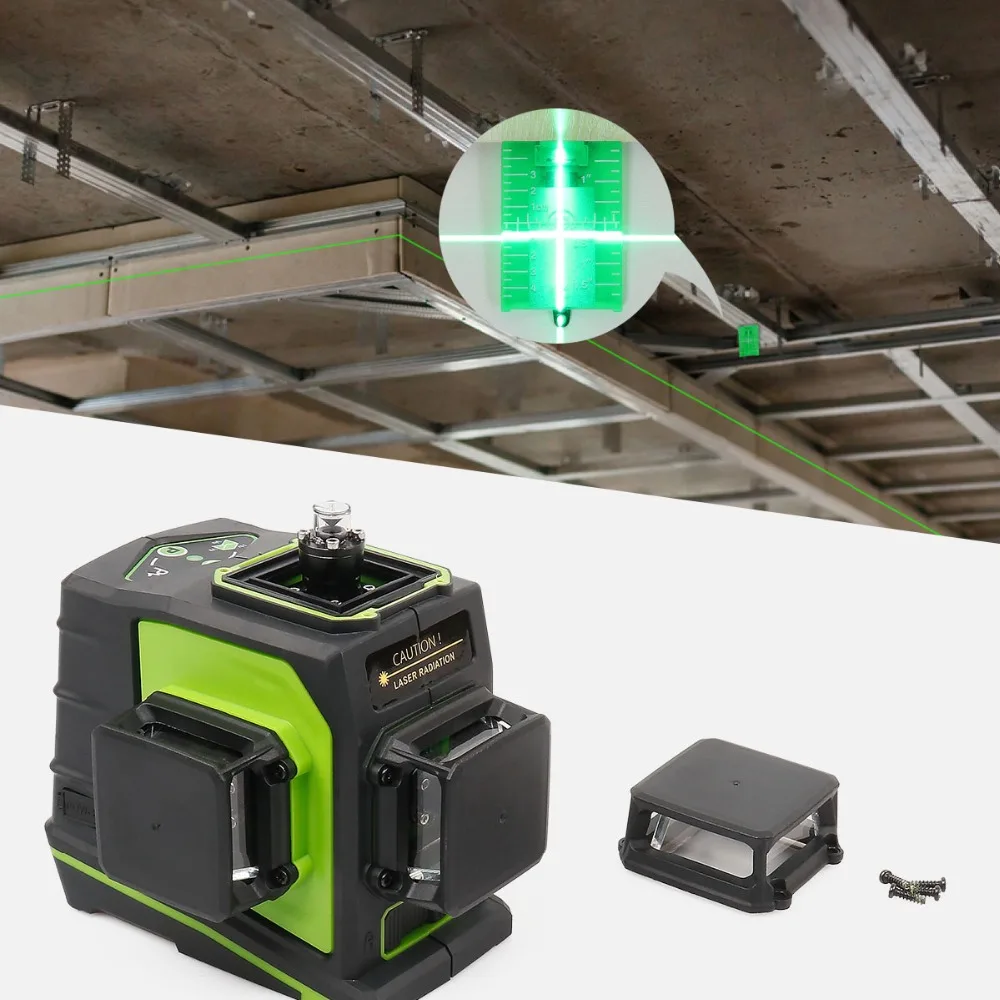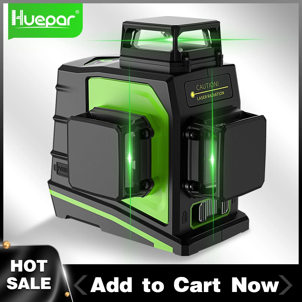 3D лазерный уровень Huepar, 12 линий, импульсный режим, самонивелирующийся на 360 градусов, Горизонтальные и вертикальные зеленые перекрестные линии, супермощный лазер