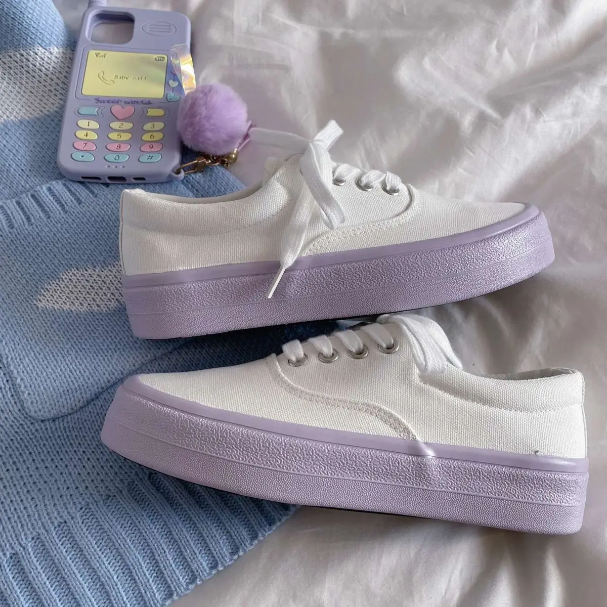 Кроссовки HOUZHOU женские на платформе, спортивная обувь, Вулканизированная подошва, туфли на плоской подошве, фиолетовые, в стиле Харадзюку, 2021