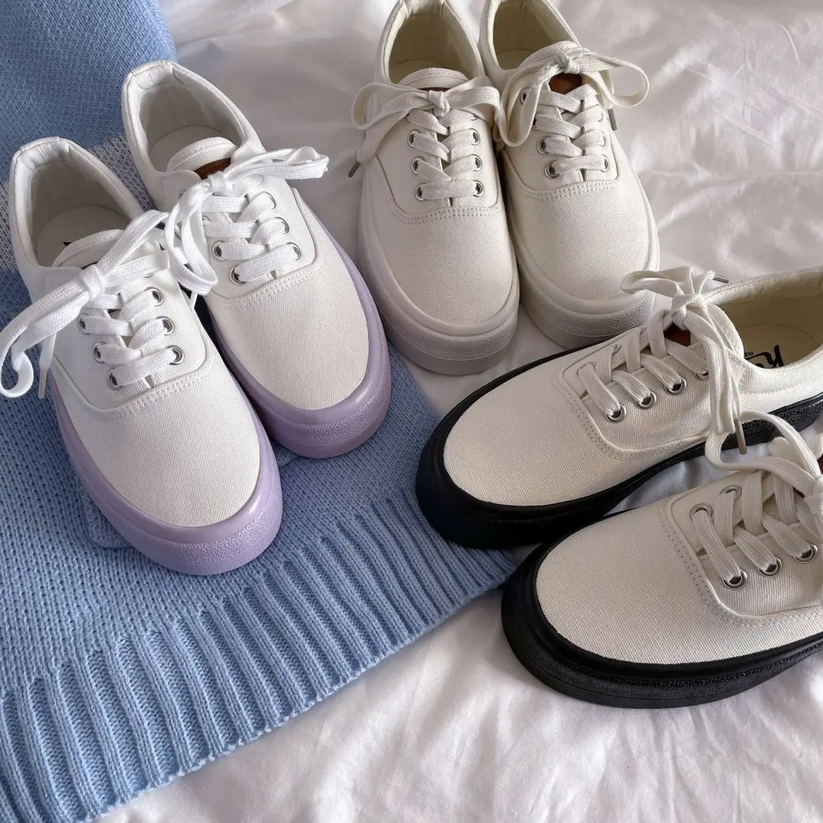 Кроссовки HOUZHOU женские с круглым носком, милые маленькие белые с...