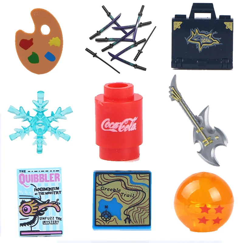 Рюкзак Sketchpad, гитара, карта, книги, снежинка, катана, скейтборд, электрическая гитара, зонтик, компас, портфель, лента, алмаз, белый нагрудник, микрофон, трость, флаг, бутылка, трофей, медовая банка, дерево, трава, воздушный шар, тыква, Легкие прозрачные фигурки, камера, соломенная шляпа, бокал, бокал KPJ 10 шт./лот аксессуары для фигурок Sketchpad рюкзак гитара карта книги Снежинка DIY детские игрушки для мальчиков и девочек строительные блоки кирпичи