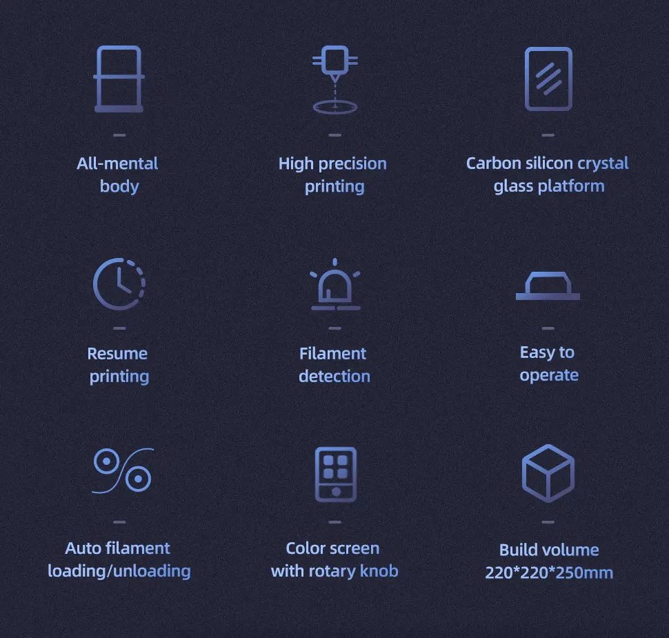Купил спонтанно. В 3d печати полный ноль. До Красноярска добирался почтой России 16 дней. Собирал по инструкции, потом глянул ролики в Ютубе на канале производителя, на всякий случай. В комплекте есть запасные винты, запасное сопло, флешка 8Гб, шпатель, игла для чистки сопла. Стол кривоват оказался, выпуклый, долго настраивал. На флешке есть программы слайсеры и модели в формате stl и слоёные. После настройки стола вставил флешку запустил печать тестовой модели, напечаталась хорошо.