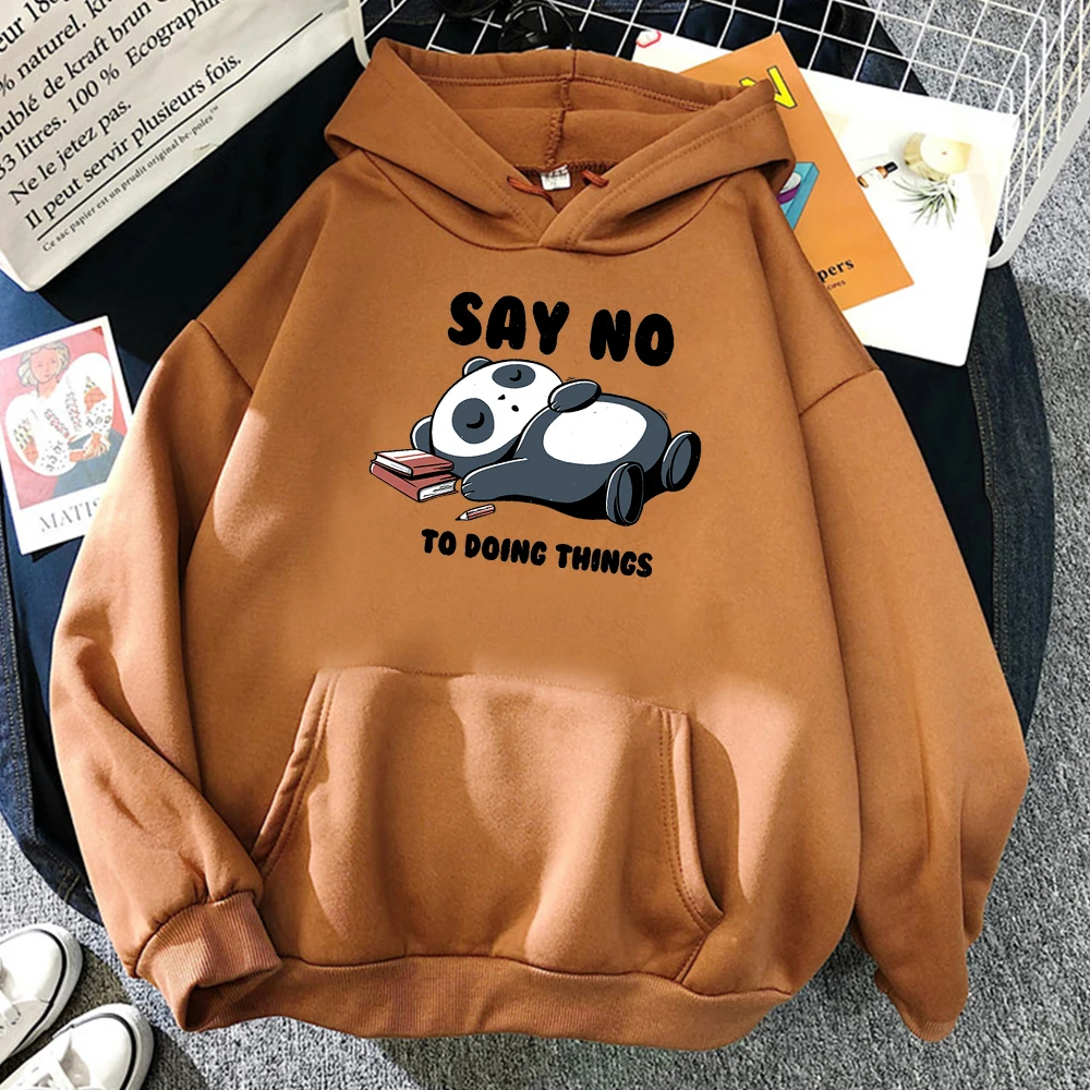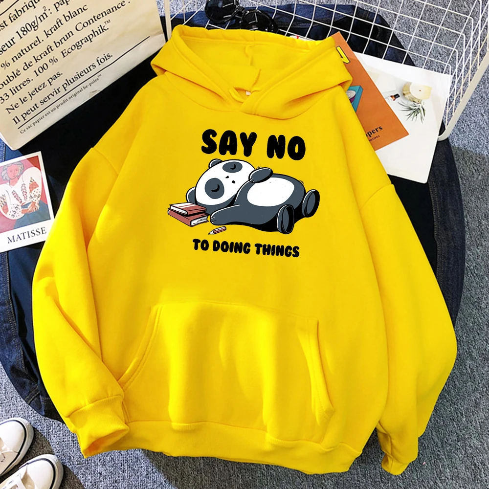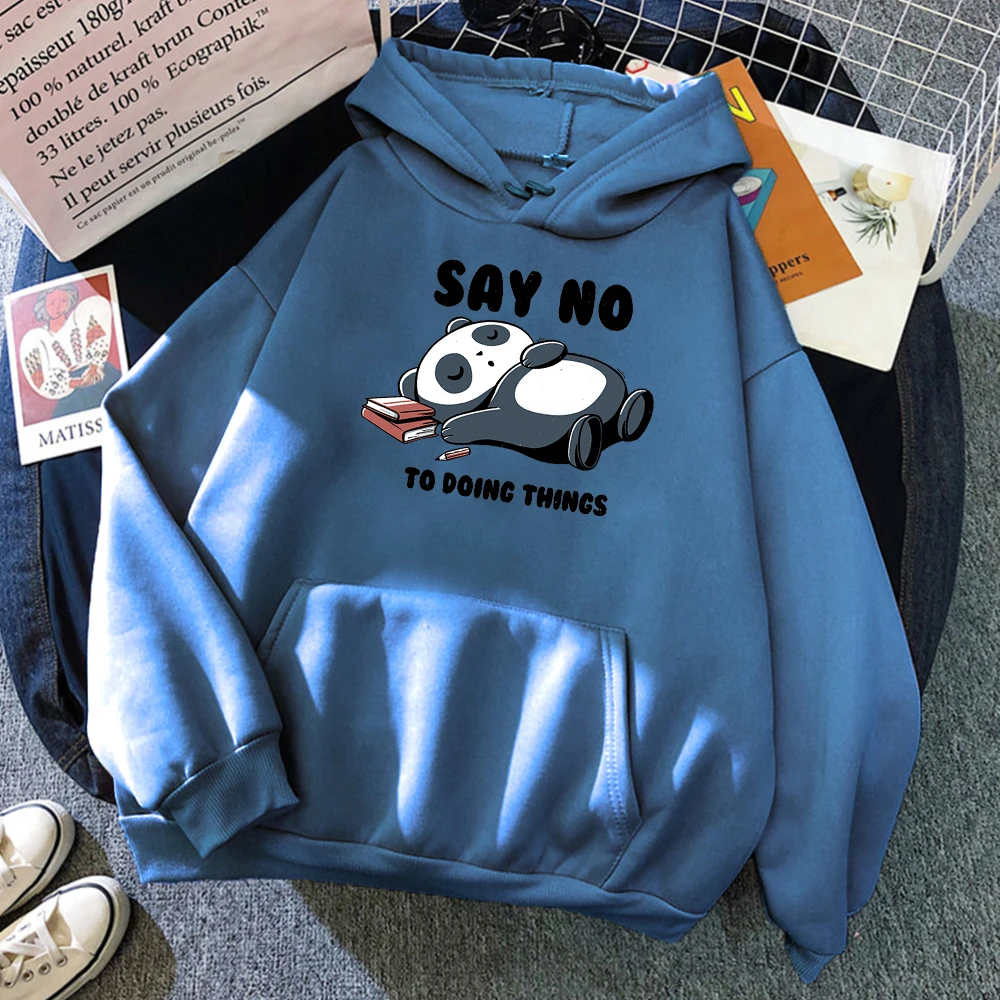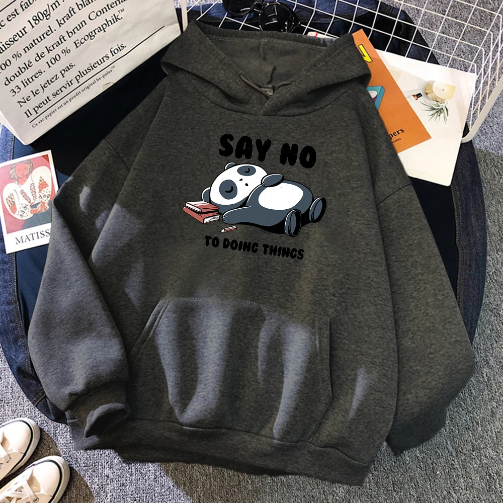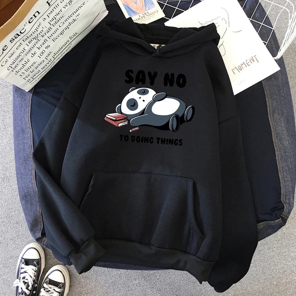 Мужская толстовка с капюшоном в стиле хип-хоп с милой пандой и надписью «Say No To Doing Thing», свободная винтажная Толстовка для мужчин, удобный спортивный костюм